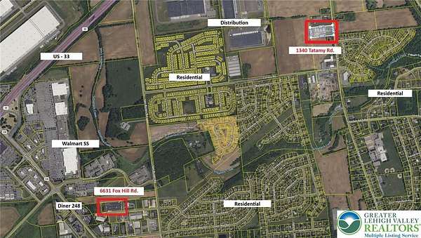 Just minutes from Int-33 in a rapidly developing Easton area is this fully operational self-storage facility with 2 locations plus additional rental income. Current Cap Rate at over 5% and a new management company is in place, reducing outgoing and showing even higher monthly projections! LOCATION ONE: 1340 Tatamy is a 3.33-acre lot gated self-storage facility that consists of a blend of multiple-sized storage units, a small business office, along with parking for RVs, boats, and single parking spaces. Additionally included at this location is a beautiful home with 2-3 bedrooms and 2 full baths that was recently vacated and is currently on the market to be rented. This could be used as additional income or home-base of operations for new owners. There is also a large 2000 sq ft detached workshop with an office and a restroom above that is currently rented out. This location is grandfathered for a 3-business allowance. Property is Zoned Po/Ip-Planned Office/Industrial Park. (This location had previously been approved for 2, 2-story climate-controlled buildings for expansion) LOCATION TWO: 3361 Fox Hill Rd (just a couple of minutes away), this is a 3.3-acre fenced and automated self-parking lot. This was completed just a few years back and is currently at 80% capacity. This property is zoned Pi/C-Planned Industrial/Commercial.