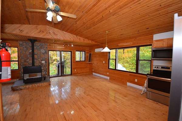 - Built in Microwave, Cathedral Ceilings, Ceiling Fans, Deck, Garbage Disposal, Mini Blinds, Near Snowmobile Trails, Washer, Wood Floors