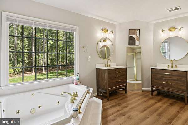 Welcome to 13401 5th Corps Lane includes new roof, new septic system along with many other updates, A stately colonial offering 4 bedrooms, 4 full baths, and over 3,800 finished square feet on 3.52 private acres in the sought-after Mineral Springs Estates community of Fredericksburg. Set against a backdrop of mature trees, the home's classic three-sided brick exterior blends timeless architecture with thoughtful updates and a layout designed for both everyday living and elegant entertaining. Over the past two years, the property has been transformed inside and out. In 2024, essential improvements brought lasting peace of mind with a new roof and gutters, both HVAC systems replaced, a new Well-X-Trol pressure tank, a new septic system, fresh interior paint, and plush new carpet throughout. In 2025, the focus turned outdoors, with stamped concrete pads at the entryways, a cleared tree line opening the backyard to sweeping views, and nearly an acre of newly established lawn creating a park-like setting. Everyday convenience was elevated as well, with the addition of a brand-new washer and dryer. Together, these enhancements not only renewed the home but enriched the beauty and livability of every space. The main level welcomes you with formal living and dining rooms graced by hardwood flooring and abundant natural light. At the heart of the home, a soaring two-story family room with a wood-burning fireplace provides a warm, inviting place to gather, while the kitchen features a center island, generous cabinetry, and a breakfast nook overlooking the backyard. The adjoining sunroom, filled with natural light, opens through French doors to one of two decks-an ideal spot for morning coffee or evening sunsets. A private home office, full bath, walk-in pantry, laundry room, and access to the two-car garage complete this level, offering both comfort and convenience. Out back, the home invites you to enjoy the outdoors with two spacious decks and a covered brick patio below, all framed by mature trees that create a serene and private backdrop. The expanded lawn and cleared tree line provide open, sunlit space for play, gardening, or entertaining while preserving the natural wooded views that make the setting feel so tranquil. Upstairs, the primary suite serves as a private sanctuary with a sitting area, cozy fireplace, a spacious walk-in closets, and a spa-inspired bath featuring dual vanities, a jetted soaking tub, and a separate shower. A second bedroom enjoys its own en-suite bath, while two additional bedrooms share a Jack-and-Jill bath with dual sinks. Open hallways overlook the family room below, filling the upper level with light and adding to the home's airy, connected feel. The unfinished walkout lower level, with multiple windows and two separate entrances, offers endless possibilities for the future-whether you envision a home theater, fitness space, guest suite, or recreation room. Mineral Springs Estates offers a rare combination of privacy and convenience, with shopping, dining, and historic downtown Fredericksburg just minutes away. Outdoor recreation along the Rappahannock River is close by, and commuters will appreciate easy access to Route 3, I-95, and the VRE for travel throughout Northern Virginia and Washington, D.C. Blending timeless design, modern updates, and a setting that feels worlds away yet close to everything, 13401 5th Corps Lane is more than a home-it's a retreat waiting to be discovered.