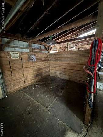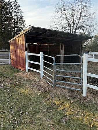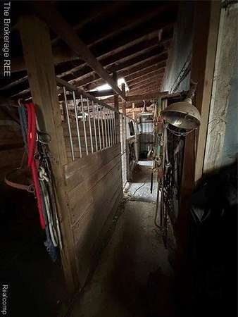 Est $3,232/mo9 acre property with 2 horse stables and a grooming stable. Fenced acres for horses to roam with 2 lean-to shelters and a hay barn. The stables have a heated and water available workshop with a 1 bedroom apartment above. Property also has a pole barn, shed and an outdoor structure area to eat and relax by the Pond.