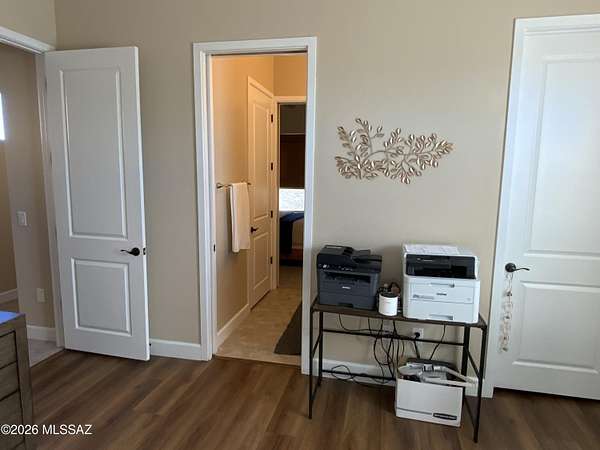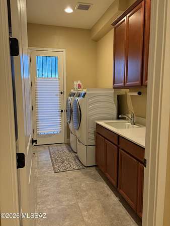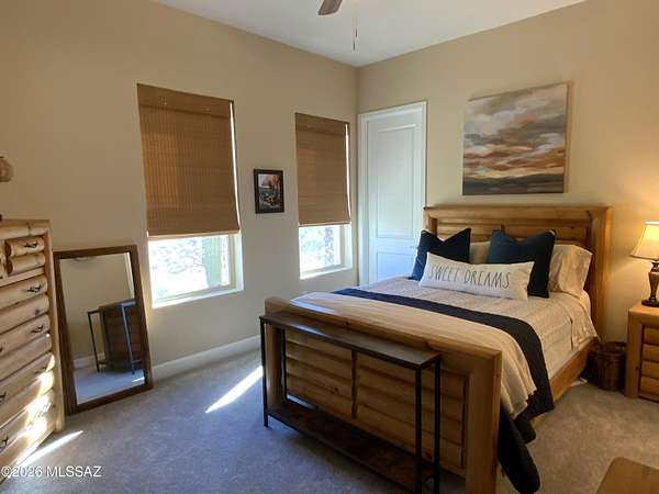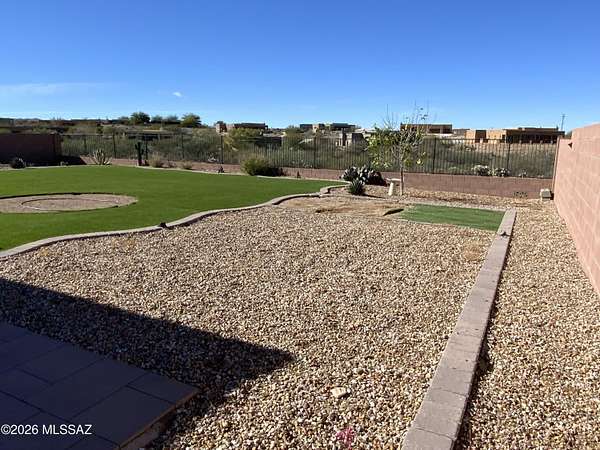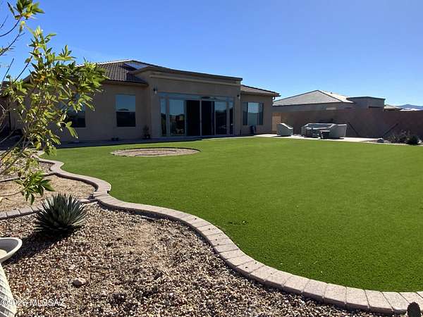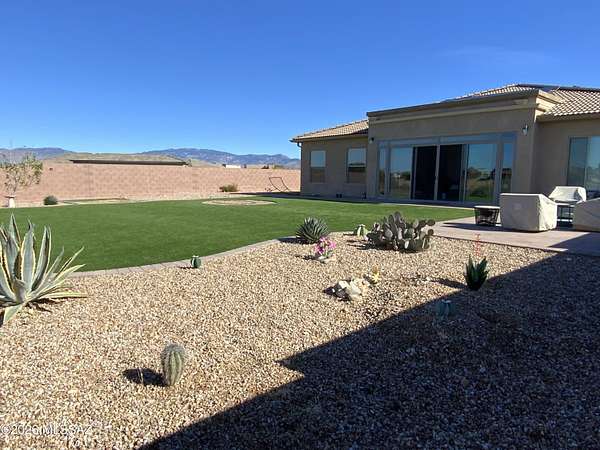 New listing in scenic Windmill Ridge at Mountain View Ranch - Beautiful semi-custom 3144 s.f. built 2022. Impressive Foyer, tray ceiling. Great Room, Library, 4 Bedrooms, 3.5 Baths, Laundry Rm & W/D. Enclosed rear patio creates ''Arizona Room'' (flush/level slab) to enjoy amazing sunset views! Dining area and Owner's Suite extended 4' by builder. High ceilings, wide doorways. Upgraded granite kitchen, SS elec dbl ovens, gas cooktop, DW MW Ref. Huge island & pantry. Tile, carpet, luxury vinyl plank flooring. Wrought iron security door. 3-car Garage w/ service door. Soft water system (potassium pellets used). Pavered driveway. 10' double gate & single gate to rear yard. Large pool-sized lot. Professionally installed turf, pavers, desert plantings. Block,view fencing. Alarm. Vail schools.