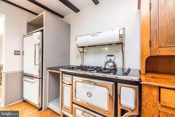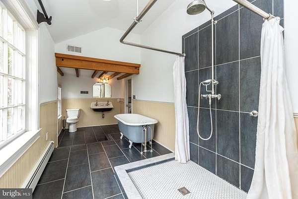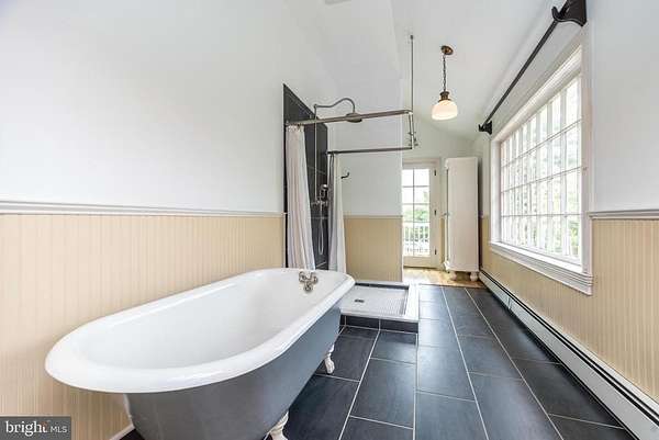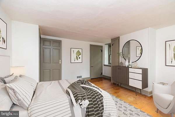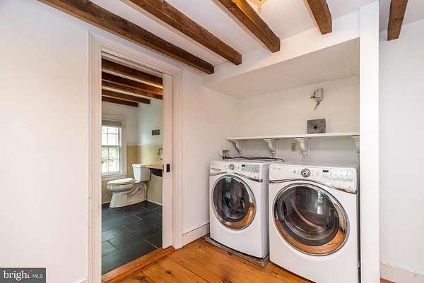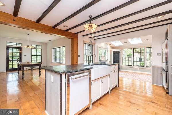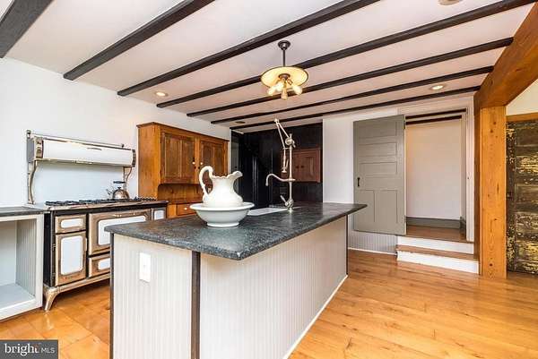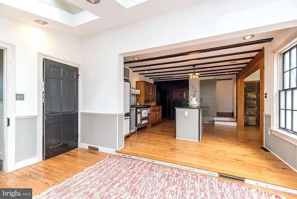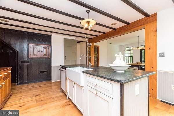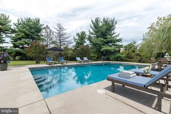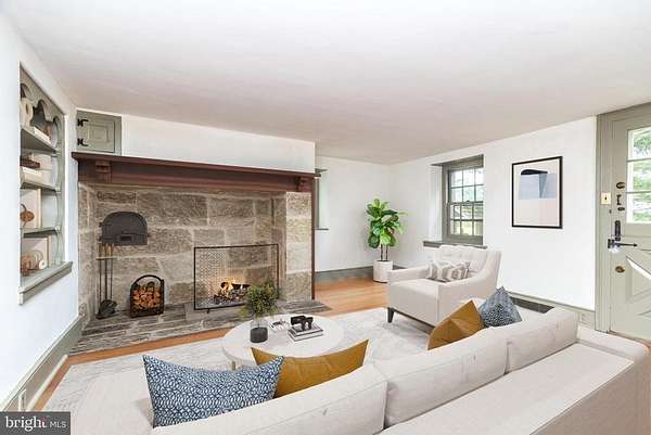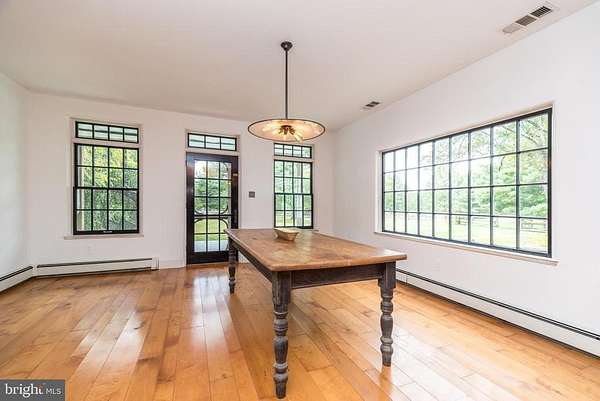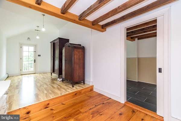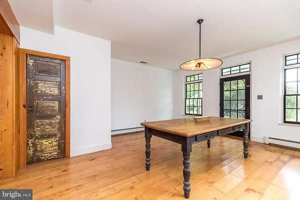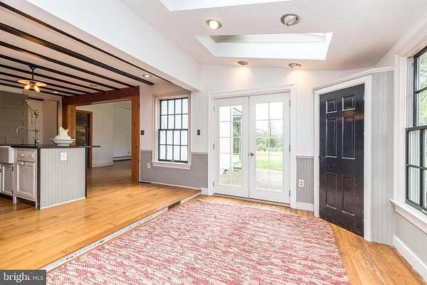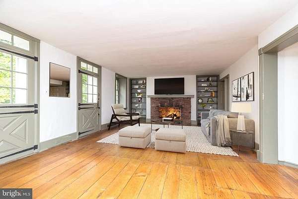 Nestled on 5.4 pastoral acres in New Hope, Long Shadows Farm is a rare 1850 farmhouse that beautifully blends timeless character with thoughtful updates. The main residence offers 5 bedrooms and 3.5 baths, highlighted by wide plank hardwood floors, exposed beam ceilings, and three wood-burning fireplaces that add warmth to the living room, family room, and the primary suite. The updated kitchen showcases Heartland appliances, a soapstone island with Waterstone faucet, and opens to a sunlit breakfast room with French doors leading to a charming patio. The home features two mudrooms; one with an oversized double farmhouse sink and half bath, the other is the entrance from the back to the breakfast room with a heated floor opening to the breakfast room. Dutch doors in the living and family rooms, skylights in the breakfast room reflect both historic charm and modern comfort. A two-story addition expands the living space, with a gracious dining room on the main floor and a luxurious new primary bath and oversized closet above, leading to a private balcony with views of the grounds and pool. Upstairs, the second floor hosts the primary suite with its fireplace, new bath, with heated floors and balcony, along with two additional bedrooms and a newer full bath. The third floor adds two more bedrooms, a bonus room, and another updated bath, creating flexible spaces for family or guests. Beyond the main home, the property includes two one-bedroom apartments'ideal for extended family or income opportunity'as well as a historic bank barn with stables ready for restoration, and a spring house awaiting creative use. At the center of the outdoor oasis is a grand saltwater pool with a pool house, perfect for entertaining against the backdrop of rolling Bucks County countryside. Approached by a long, tree-lined drive, this one-of-a-kind property offers peace, privacy, and the enduring beauty of a historic farmhouse setting. **Interior(some) and exterior pool area photos are virutually staged for your convenience!