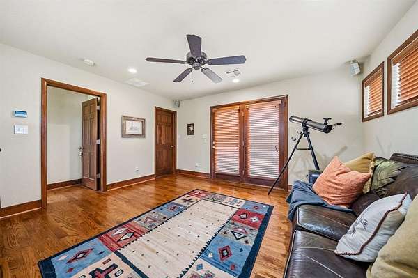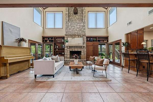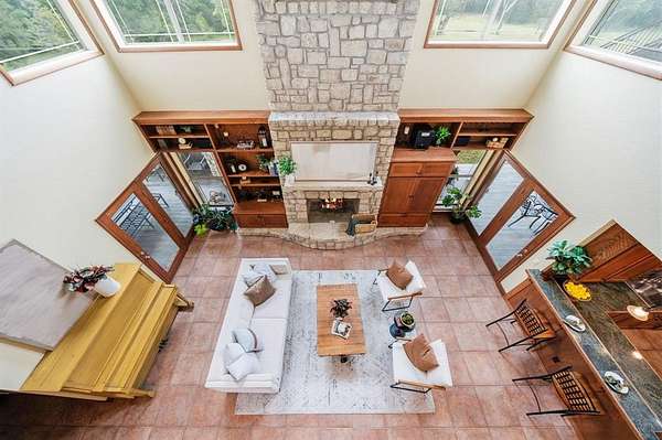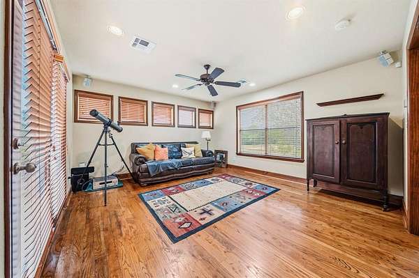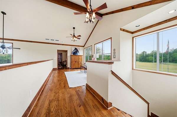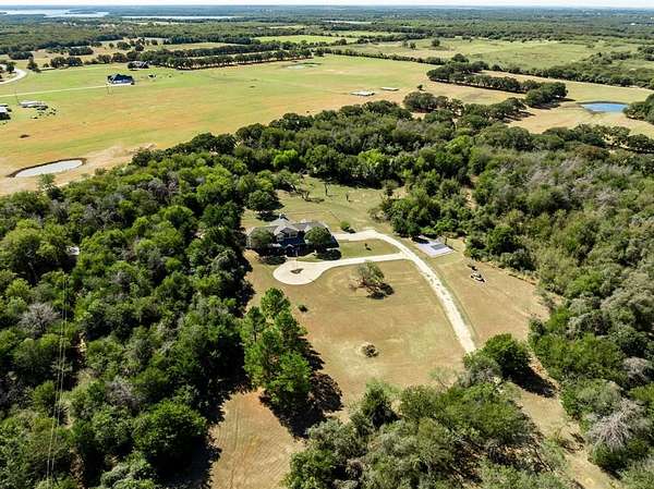 This custom built Austin limestone - Hardie board home sits on 23.85 acres with two ponds and was built in 2004. The home offers just over 4,000 square feet with 4 bedrooms, 3.5 baths, and an oversized two car garage. The living room features a wood burning fireplace with built-ins and opens to the kitchen and breakfast area. The kitchen is well appointed with a Jenn-Air cooktop, double oven, dishwasher, an island with sink, and two pantries. The downstairs primary bedroom includes an en suite bath with dual sinks, a Jacuzzi tub, and separate walk-in shower. Upstairs you will find an additional primary bedroom, 2 additional bedrooms, plus 2 full baths. Beautiful oak hardwood floors are found throughout the upstairs. Step outside from one of the bedrooms onto the observation deck for stunning views of the property.