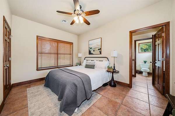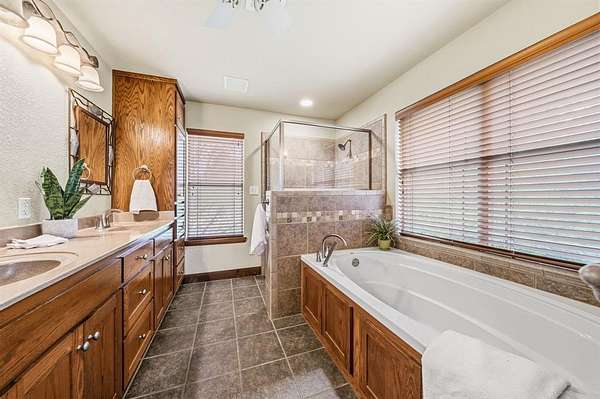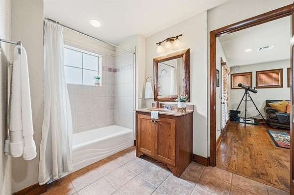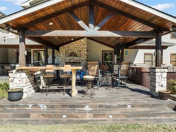 The outdoor living space is built for entertaining with a custom patio featuring a built-in wood burning fireplace, separate fire pit, outdoor bar with TV, grilling area, and a swim spa. The 20x30 metal shop on a slab has electricity and offers excellent additional workspace. A new roof was installed and the home was completely repainted in 2024. The property features a gated entry off a paved road, basketball court, and horseshoe pit. This property is located between two lakes, Lake Whitney and Lake Aquilla for additional recreational fun!