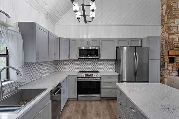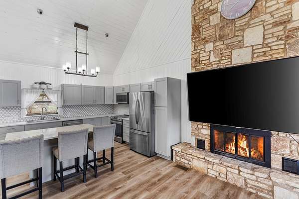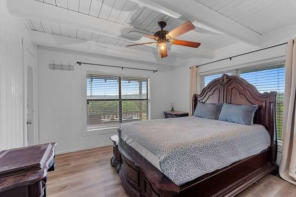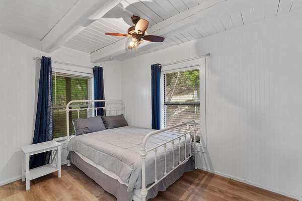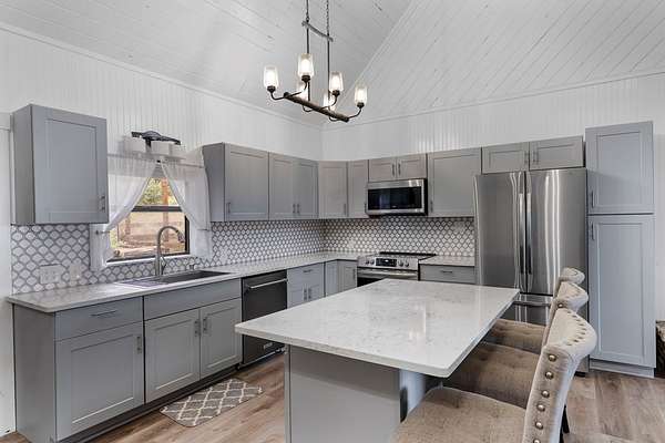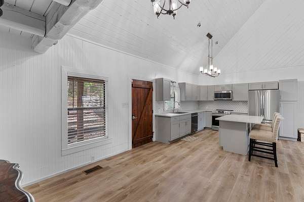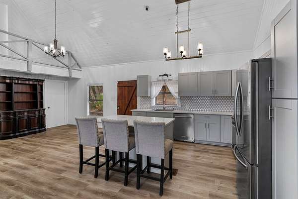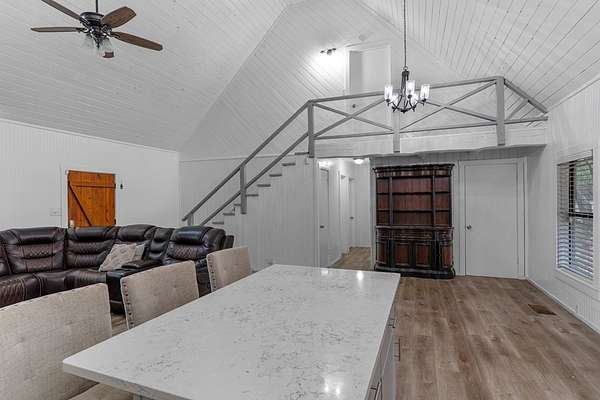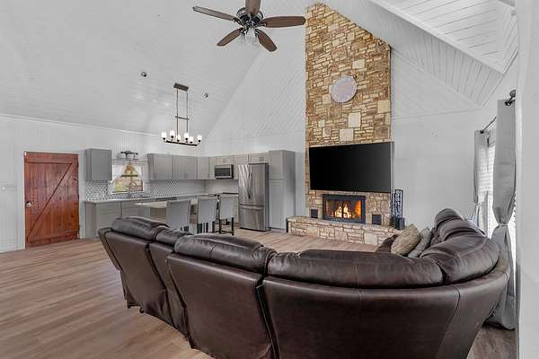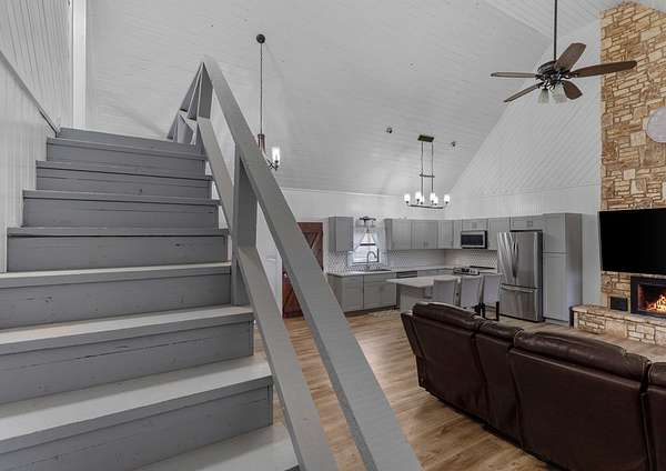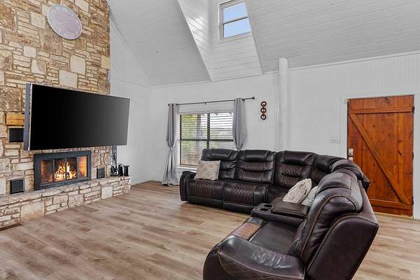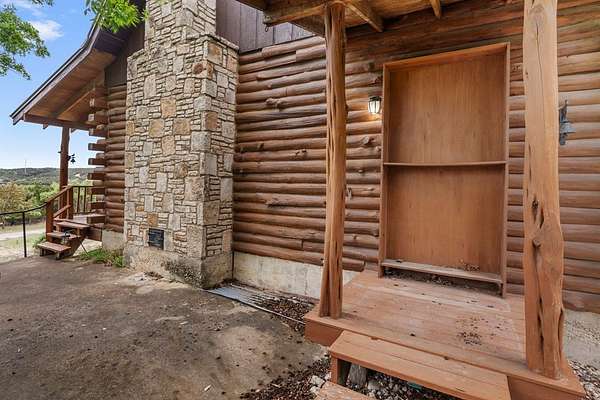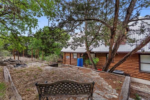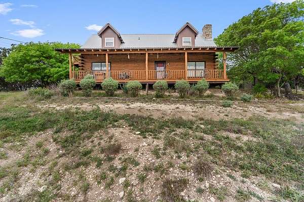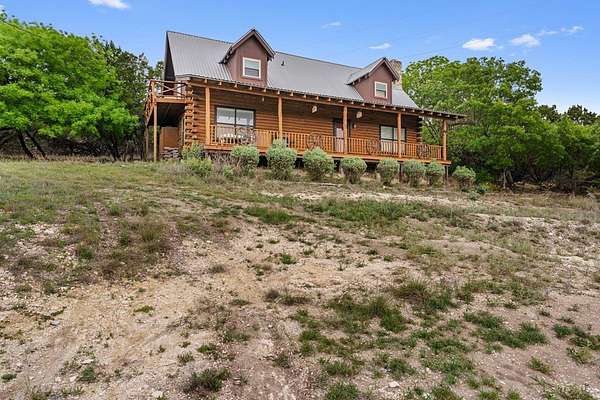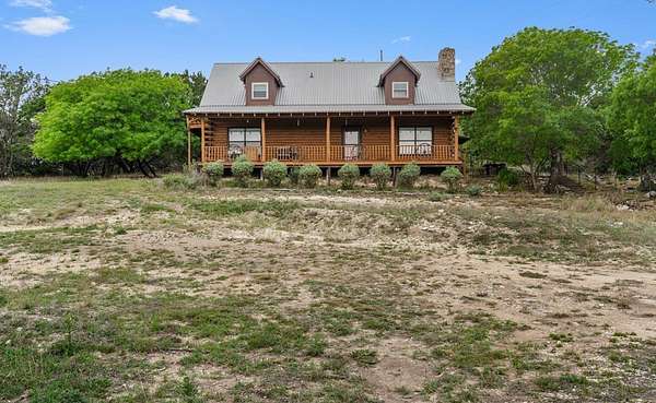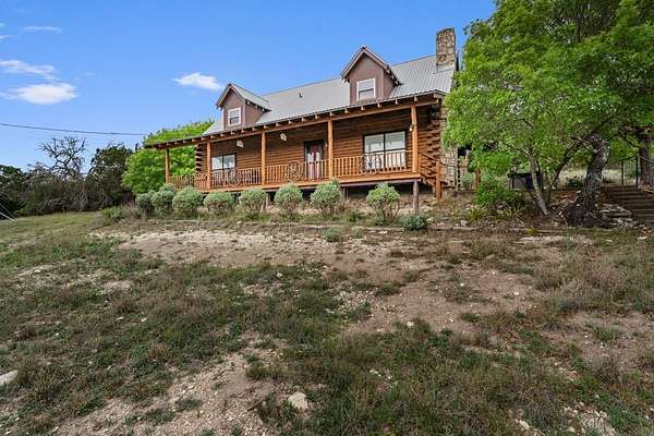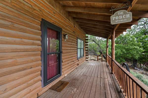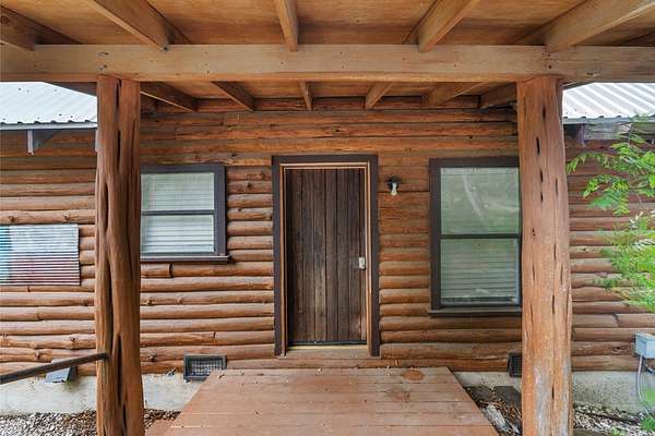 Step into a private country retreat where space, charm, and scenery come together on 6.36 picturesque acres. A gated entrance welcomes you in, leading down a winding driveway framed by park-like surroundings to a secluded two-story log home set gracefully on the hillside. Plenty of paved parking sits alongside a convenient two-car carport, while a charming set of hillside steps leads to a spacious covered front patio-perfect for taking in sweeping countryside views. Inside, the home opens to a stunning great room with soaring two-story ceilings and a dramatic rock fireplace that anchors the space. The layout flows into the kitchen with breakfast bar, dining area, and a dedicated laundry room. The main level features two comfortable bedrooms and a full bath with tub/shower combo, while upstairs offers a generously sized private suite complete with an en-suite shower bath and its own balcony-an ideal spot to unwind and enjoy the peaceful setting. Outside, enjoy the two-car carport. The workshop/storage or office area adds extra functionality and space behind the carport. A rare blend of no HOA or city taxes. Rustic character and serene living this property stands out from the rest.