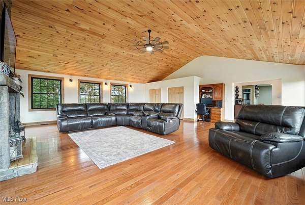 What a stunning remodeled three bedroom home on the outskirts of Jefferson. Situated on almost 13 acres of peaceful countryside. Step inside to a breathtaking 700 Sq. Ft. Family Room featuring a cathedral pine ceiling, cedar trim, and a gorgeous stone fireplace. Walk out to a brand new composite deck. The home boasts all-new Pella Impervia windows, Metal roof and siding. Hardwood floors throughout. Remodeled kitchen and bathrooms. Kitchen features Quartz-site counter tops, white cabinets and beautiful tile floor. Bathrooms updated with custom tile showers. The Master suite offers high pine ceilings, a spacious walk-in closet , and private master bath. Outside, you'll find a detached 32'x48 garage with 8' ceilings, fully insulated, complete with a bar and cabinets in the back. Another 32'x48' barn with 12' ceilings and a concrete floor adds even more functionality for storage, hobbies, or livestock. A beautiful pond on west side of barn.This is a rare opportunity to own a beautifully updated home with land, privacy, and space for all your needs. Don't wait-call today to schedule your private showing.