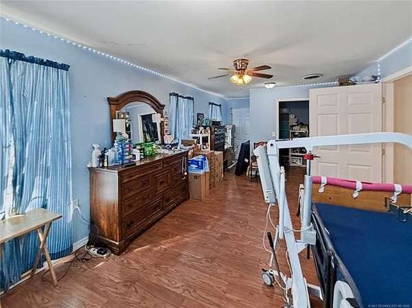 Enjoy space, comfort, and country living with this 2,676 sq ft (AP) 4-bedroom, 3-bath handicap-accessible home on 5 beautiful acres, complete with a 24x32 shop-just minutes from Tahlequah and only 10 minutes to Walmart! This well-designed home features two spacious primary suites, each with a private full bath and walk-in closet-perfect for multi-generational living or guests. The hall bath is fully handicap accessible with a roll-in shower, and wide, open spaces throughout offer easy mobility and comfort. You'll love the oversized living area and generously sized bedrooms. Step outside to enjoy gorgeous views from the large covered front porch or relax on the spacious covered back porch. A concrete sidewalk and ramp provide convenient wheelchair access. The land offers great opportunities for hunting, recreation, and hiking, with abundant wildlife and peaceful surroundings. Please note:PRICED AT $108 PER SQ FT, the home will need new carpet at the buyer's expense-an excellent chance to customize to your taste. With no restrictions, this property offers endless possibilities. Come experience true country living with privacy, views, and convenience-all in one exceptional property!