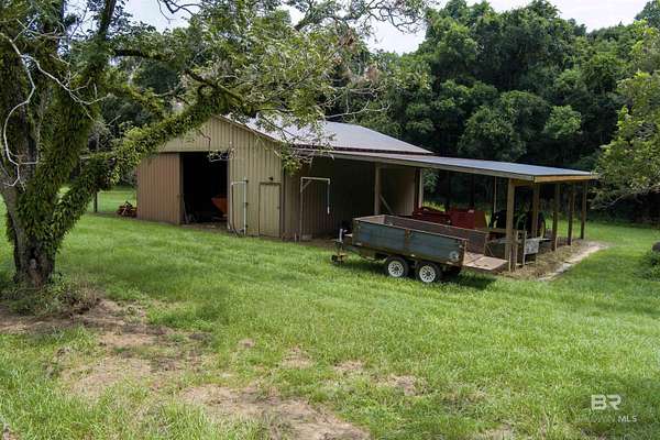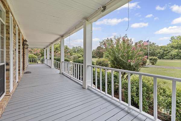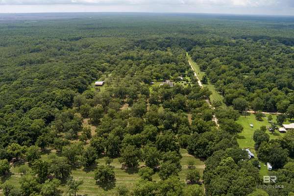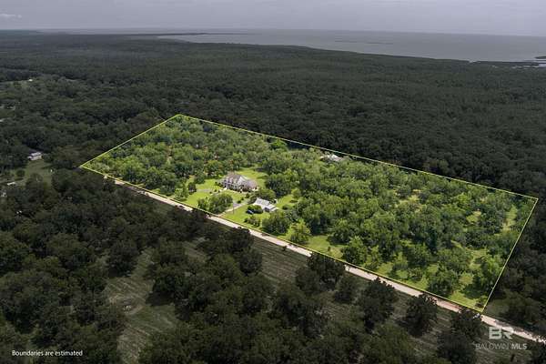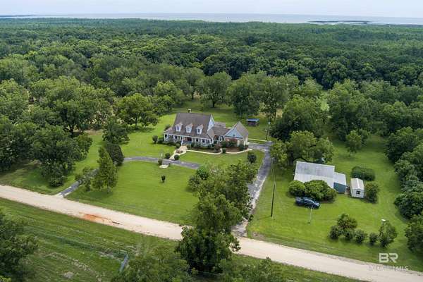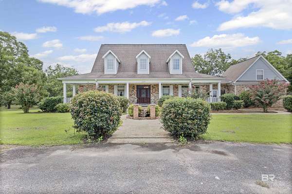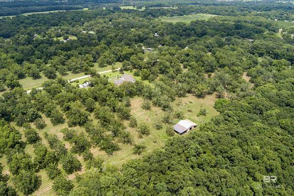 Discover nearly 20 acres of serene beauty in the heart of Grand Bay, surrounded by a producing pecan orchard and bordered by protected woods for lasting privacy. This remarkable property offers the best of country living with over 4,000 square feet of space designed for comfort and gatherings.Inside, you'll find a spacious living room with a cozy fireplace, a formal dining room perfect for entertaining, and a large kitchen with plenty of room for cooking and hosting. Two sunrooms fill the home with natural light and provide peaceful spaces to relax and enjoy year-round views of the orchard.The thoughtful layout includes a separate bedroom with en suite bath, ideal for guests. Outside, the front porch invites you to unwind, while the barn offers ample storage and versatility for equipment, hobbies, or projects.With its combination of privacy, charm, and space, this property is a rare opportunity to own a Grand Bay retreat where nature and comfort meet. Buyer to verify all information during due diligence.