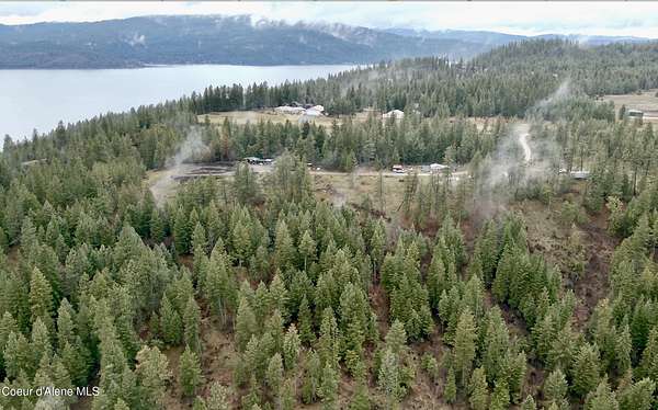 Rare 25-acre parcel in the Carlin Bay area with expansive lake and mountain views, bordering the Carlin Bay airstrip. A unique setting offering privacy, usable land, and a true North Idaho feel with a mix of open ground and mature trees. Elevated views overlooking Lake Coeur d'Alene provide a scenic backdrop while maintaining a quiet, private setting away from the immediate waterfront. Seller has historically used a 30' boat slip at Carlin Bay Marina along with access to the airstrip and gated beach area. The property is not a member of the Carlin Bay Property Owners Association, and continuation of any such use may be subject to CBPOA approval or membership requirements. Cabin, one well, and two septic systems on site. Power available on a nearby parcel.