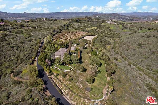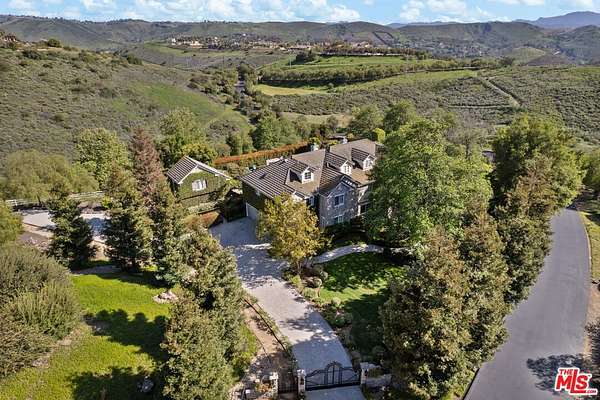 Just reduced - Truly the best equestrian luxury property under $7.5m. Set against the backdrop of breathtaking Santa Rosa Valley, Rocking Horse Ranch is a 21-acre dream estate that strikes the perfect chord. Tucked within a private, gated equestrian enclave where bridle paths weave through the community, this Country French-style retreat is more than just a home - it's a lifestyle. Step inside the 6,731-square-foot main house and find a harmony of style and space, boasting 7 bedrooms and 6 bathrooms. This estate knows how to entertain, with beautifully landscaped areas (designed by Wendy Harper of Gardens of the World) that provide the perfect setting for hosting everything from intimate get-togethers to crowd-pleasing outdoor events. A detached (approx) 1200 sf 2-level pool/guest house/recording studio with living space, bath area, kitchen and laundry area overlooks it all, is ready to inspire your next composition or host your favorite guests. For the horse enthusiast, the property features a 6-stall barn with turnouts, a mini kitchen/bath, and a tack/sitting room, perfect for pre-ride chats or post-ride cool-downs. The star attraction is the regulation-sized riding arena with grandfathered lights (a rarity in Santa Rosa Valley) and a viewing stand that's ready to host any equestrian performance. There's also a hot walker, washing station, a pony ring and even a luxe chicken coop resort. But it's not all boots and saddles. This estate has plenty of space to kick back and enjoy the good life. Wander through the avocado grove, tend to the greenhouse and rose garden, or perfect your short game on the putting green which doubles as an outdoor venue for movie nights under the stars. And don't miss the gentle fenced path to a lush, flat grass area, perfect for hosting everything from weddings to soccer practice to memorable barbeques while taking in the Santa Rosa Valley views. The main residence presents high ceilings, a custom library/office, a music room, and gathering area with fireplace and sun room that opens onto the spectacular outdoor entertainment spaces. The kitchen is a chef's arena, showcasing Sub-Zero refrigerator and freezer, 2 Dacor ovens, a 48-inch Thermador stove top w/BBQ, 2 Miele dishwashers, and 2 islands big enough for your entire crew. Nearby, the formal dining room comes complete with a bar and service area, ideal for cocktails and conversation. On the first floor, a full-bedroom suite with a private entrance is perfect for guests or au pair. Upstairs, the primary suite is pure indulgence, with a cozy fireplace, French doors leading to a sprawling balcony, and a mini kitchen for morning coffee or late-night snacks. Five spacious additional bedroom suites complete this level. Four fireplaces and heated floors add to the home's warm appeal while integrated speakers, Creston automation and video security systems supply smart home features at your fingertips. There is an oversized 4-car garage and ample guest parking behind the entry gates. And when the lights go down? Head to the upper-level movie room with a bar, or step out to the exceptional pool and spa area, where a waterfall wall, fire features, and three covered gathering spaces set the stage for unforgettable evenings. The detached outdoor living room features a large fireplace, TV, outdoor kitchen and bar. Whether you're throwing unforgettable pool parties, riding the trails or simply soaking in the sunsets, this estate is where country dreams and artistic inspiration come together in perfect harmony