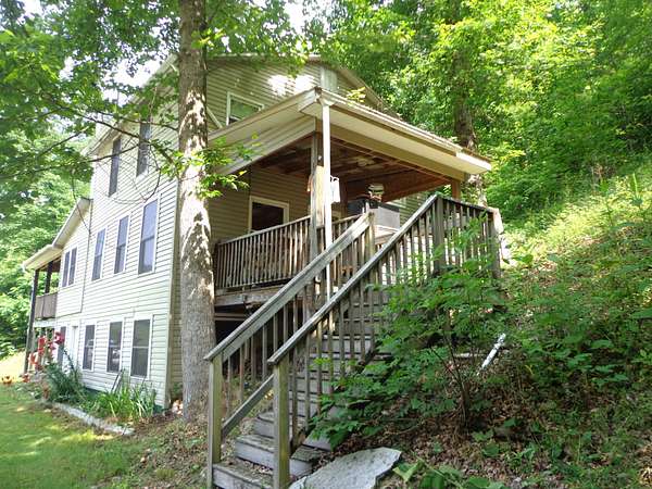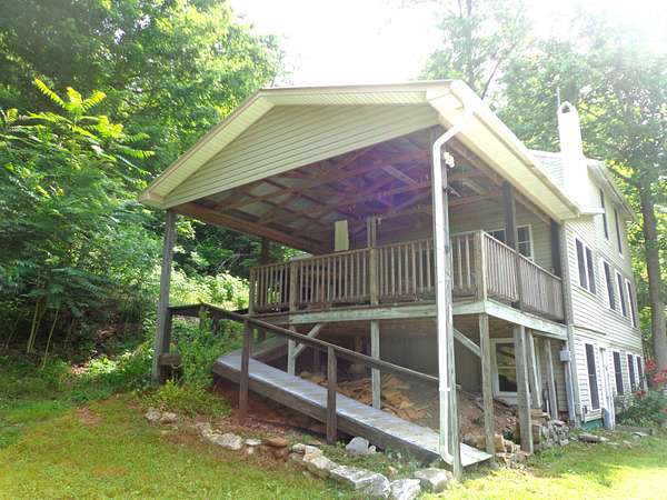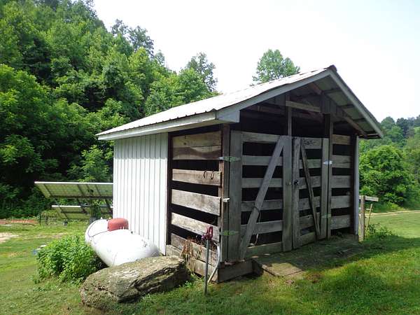 If you are looking for SERENITY, this property is perfect for you! * OFF-GRID LIVING! 27 Acres in the Russell Creek community and multiple improvements! * SOLAR POWER SYSTEM ON SITE! * This home has beautiful hardwood flooring, kitchen with walk-in pantry and spacious living room. There is one bedroom and full bath on the main level. * The upper level consists of two bedrooms (one with large walk-in closet) and one 1/2 bath. * The basement is unfinished and perfect for storage. * DELICIOUS SPRING WATER comes directly from the property. * Well also on property * Additional improvements include a HUGE NEW DETACHED SHOP, detached storage/shed, BARN and large additional storage building. * The land consists of mostly woods which gives the improvement site so much privacy and is perfect for hunting. * This property is priced to SELL!
