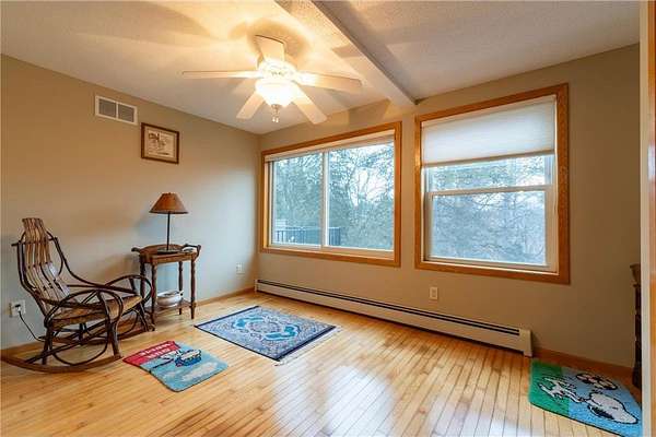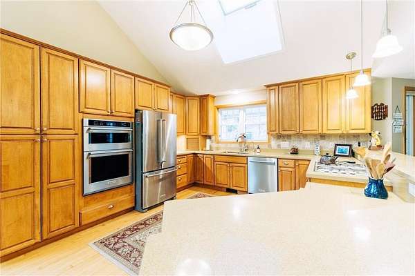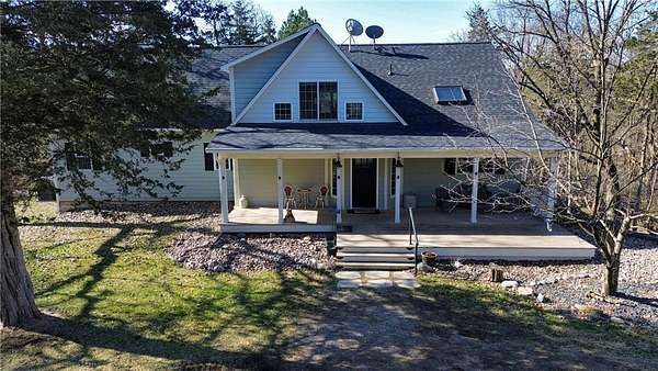 Welcome to your 4 bedroom, 3 bath retreat in Afton, situated on 8.5 acres. Originally built in 1875 and completely remodeled in 2001, this home blends historic charm with modern updates. The open layout features main-floor vaulted ceilings, huge windows, and skylights that fill the home with natural light. Enjoy beautiful wood flooring, solid surface kitchen counters, and stainless steel appliances. A loft overlooks the main living space, adding character and flexibility in the living space. Relax on the front porch or deck and appreciate the nearby rolling hills, trees, and trails.