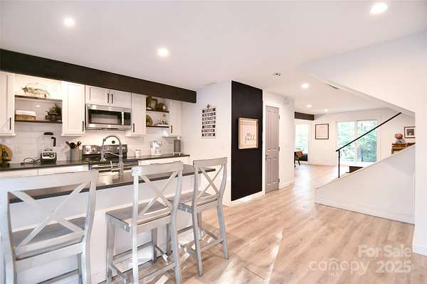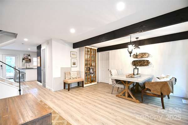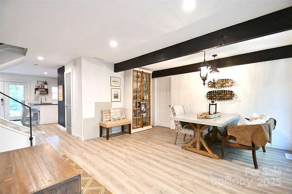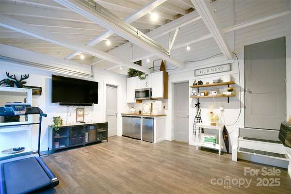 Leave the stress of the day behind as you turn onto your long, winding driveway and arrive at your own private sanctuary. Nestled on 3.24 wooded acres, this exceptional two-story home offers the serenity of a mountain retreat with the everyday convenience of being just minutes from the heart of Huntersville. Step inside to discover a beautifully updated kitchen with a center island, seamlessly opening to a spacious great room and dining area - the perfect setting to relax or entertain, surrounded by breathtaking views of nature through oversized windows. The main level features a rare first-floor bedroom and full bath, ideal for guests or multigenerational living, plus a convenient laundry area. Upstairs, you'll find two additional bedrooms, a full bath, and a bonus room with soaring views of the surrounding forested acreage - a flexible space perfect for a home office, studio, or media room. Outside, the property truly shines. Enjoy morning coffee or sunset wine on your porch, explore your private wooded trails, or unleash your creativity in the oversized garage, offering incredible storage and space for hobbies, projects, or future living space. There's is a kitchenette, a bedroom, and more in the garage! Highlights Include: 3 Bedrooms + Bonus Room 3.24 Private, Wooded Acres First-Floor Bedroom & Bath EV Charging for car Updated Kitchen w/ Island Vaulted Ceilings & Open Layout Huge Detached Garage/Workshop Serene Views from Every Room No HOA | Minutes to Shops, Dining & I-77 This is more than a home - it's a lifestyle. A rare opportunity to enjoy quiet country living with city access just down the road. Whether you're seeking peace, privacy, or the perfect live-work-play environment, this one-of-a-kind property delivers!