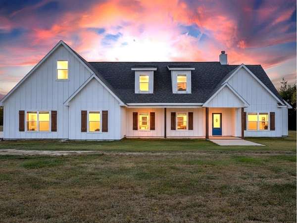 Beautiful country home on approximately 9.5 acres located in desirable Wills Point ISD. Property features a gated entrance, pond, and large shop with workspace and entertainment area with full bath. The well-designed split-bedroom floor plan offers an open living and kitchen area with vaulted ceilings, wood flooring, and plenty of natural light. Spacious primary suite includes dual vanities and walk-in his and her closets. Enjoy peaceful country views from the covered porch and mature shade trees throughout the property. Conveniently located near Hwy 80 for easy access to town. Perfect setup for a small ranch, home business, or anyone seeking quiet country living with modern comfort. Shop Building is 35x60 with additional 10x35 covered porch.