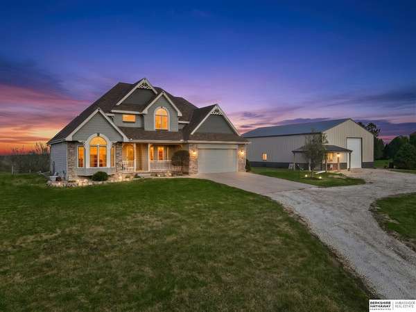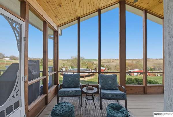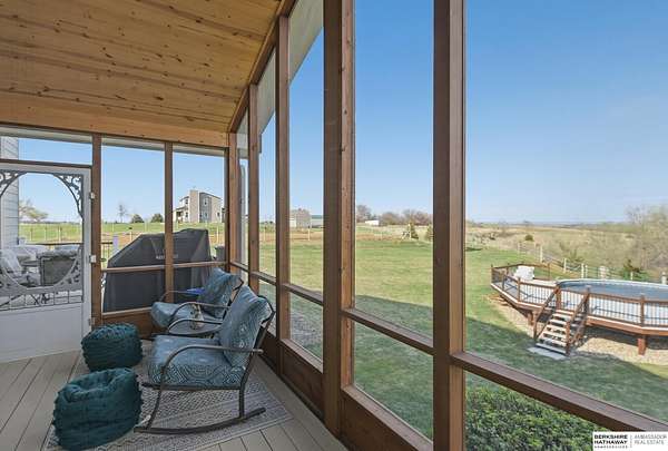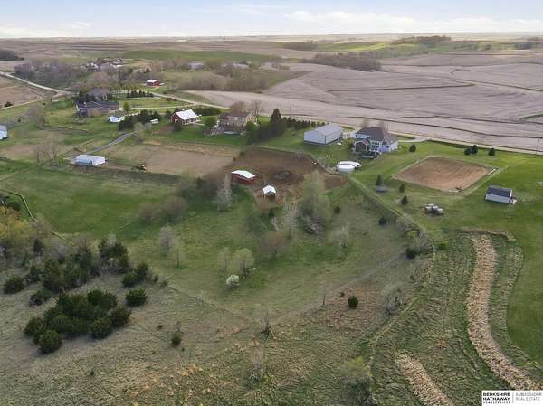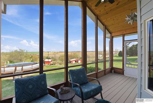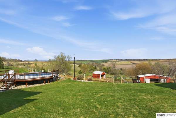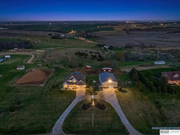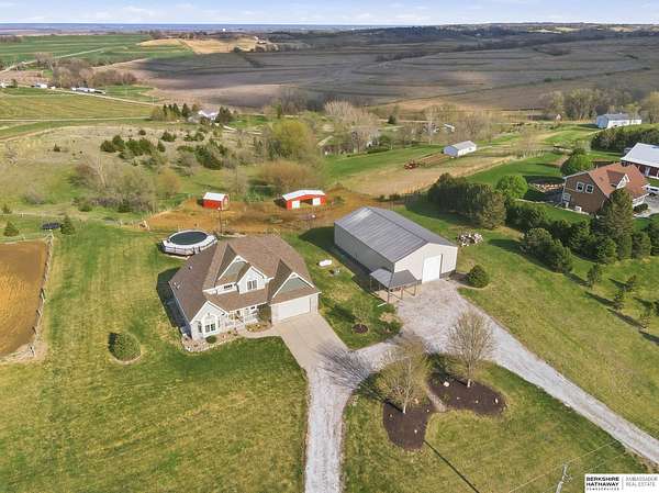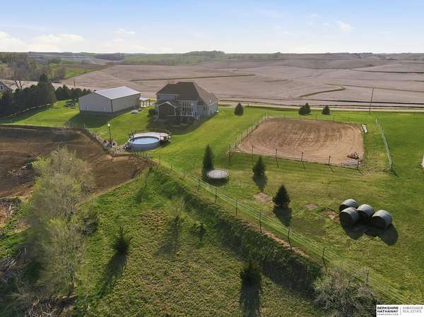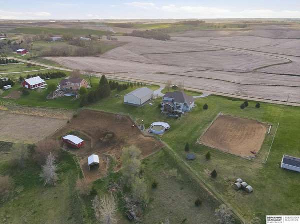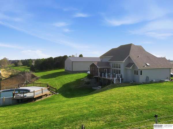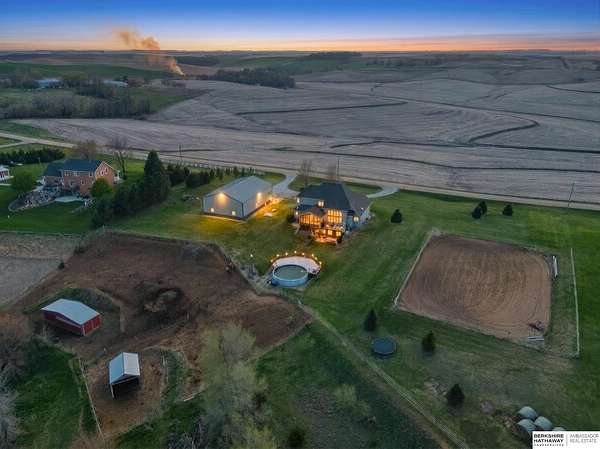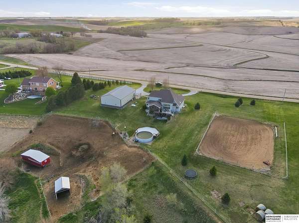 Libby Long, M: 402-699-7394, libby.long@bhhsamb.com, https://info@BHHSamb.com - The acreage opportunity on 4.4 acres, this property is built for both lifestyle and function with a horse arena and a 40x60 insulated outbuilding ready for work or play. Inside, soaring 14-foot tin ceilings and a double-sided fireplace anchor the great room, complemented by rich oak hardwood floors throughout. The kitchen and living spaces flow effortlessly, while the primary suite offers a spa-like feel with dual shower heads and a clawfoot tub. Step outside to a cedar deck and elevated pool, perfectly positioned to take in the landscape. Geothermal keeps energy costs low, paired with a lifetime water heater, water softener, newer roof, and durable hardie siding. Just 30 minutes to Irvington with nearly all paved access, this is acreage living done right!