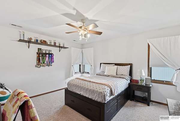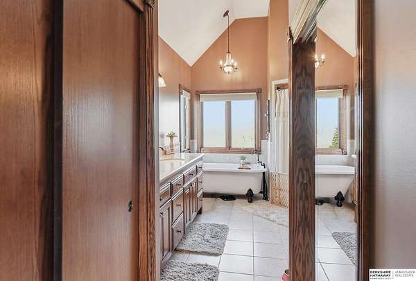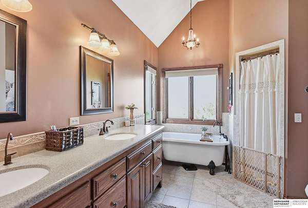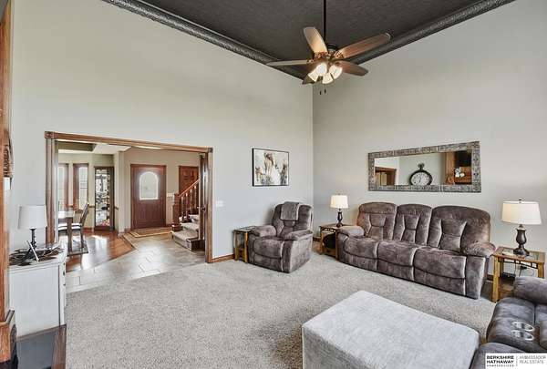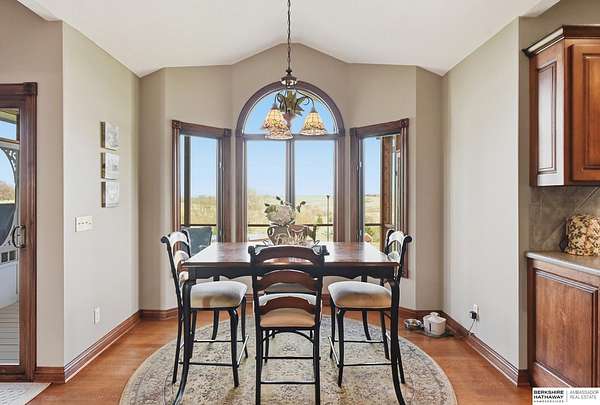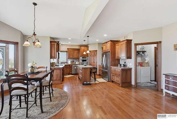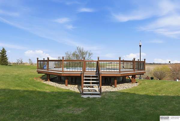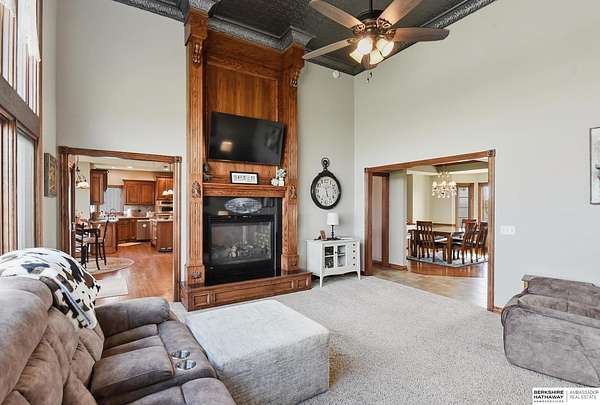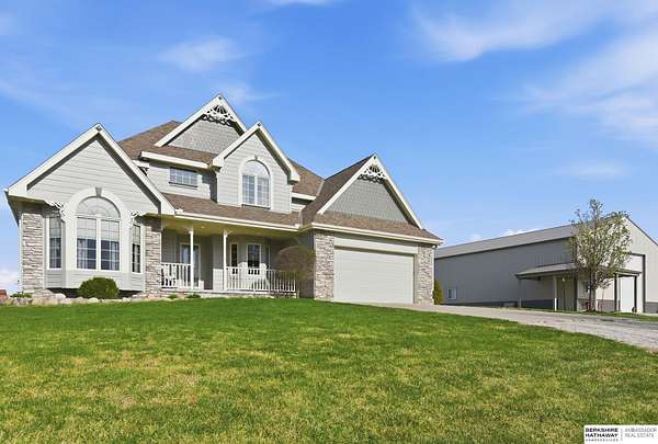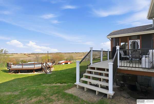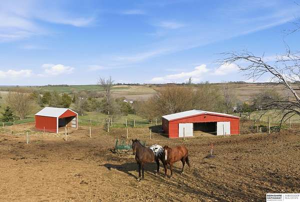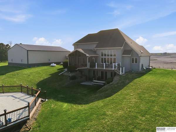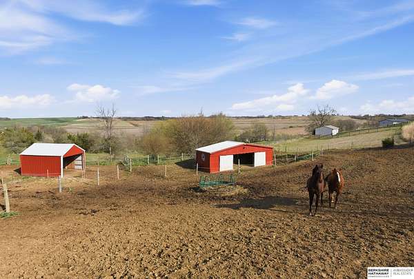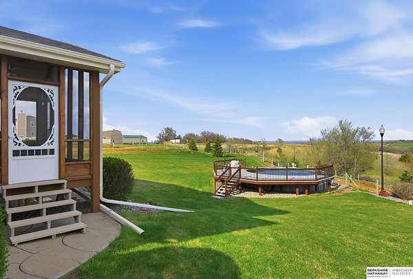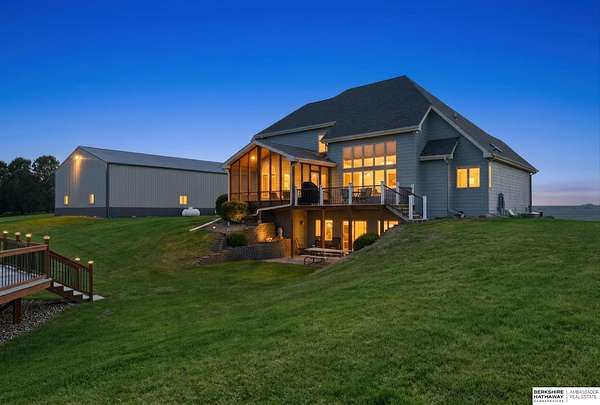 Libby Long, M: 402-699-7394, libby.long@bhhsamb.com, https://info@BHHSamb.com - The acreage opportunity on 4.4 acres, this property is built for both lifestyle and function with a horse arena and a 40x60 insulated outbuilding ready for work or play. Inside, soaring 14-foot tin ceilings and a double-sided fireplace anchor the great room, complemented by rich oak hardwood floors throughout. The kitchen and living spaces flow effortlessly, while the primary suite offers a spa-like feel with dual shower heads and a clawfoot tub. Step outside to a cedar deck and elevated pool, perfectly positioned to take in the landscape. Geothermal keeps energy costs low, paired with a lifetime water heater, water softener, newer roof, and durable hardie siding. Just 30 minutes to Irvington with nearly all paved access, this is acreage living done right!