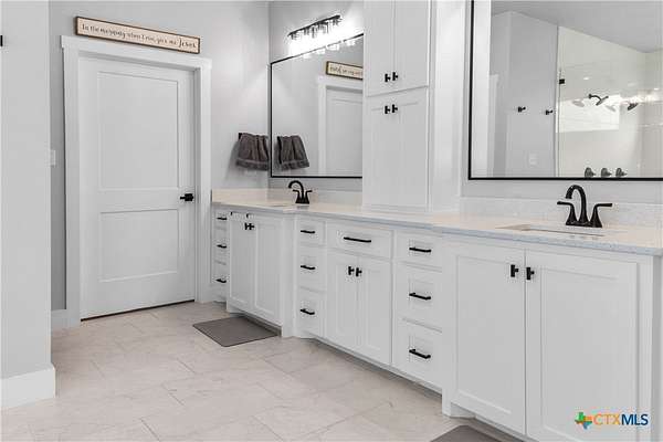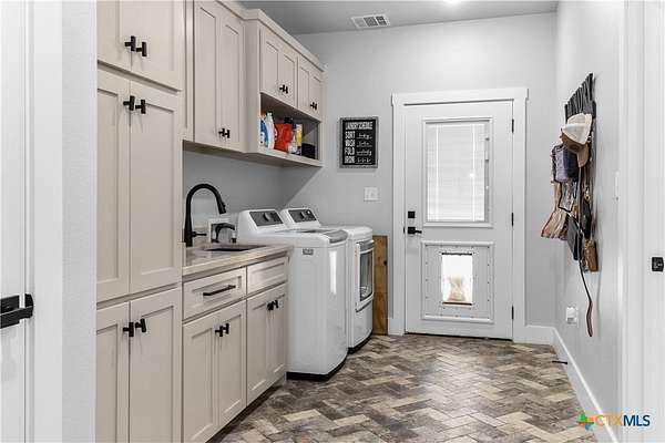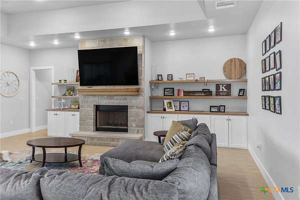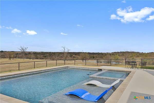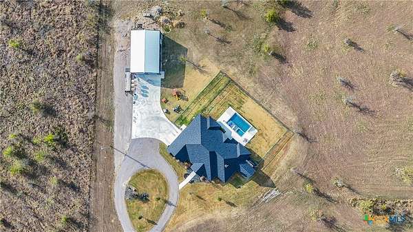 Stunning 2023 custom home on 30.03 acres featuring 4 beds, 3 baths, extra-large bedrooms, tile and carpet flooring, and abundant storage. Gourmet kitchen offers double award-winning islands, gas cooktop, two sinks, extra butler's pantry, large pantry w/ built-ins, swinging access door, and built-in ice maker. Living room includes wood-burning fireplace, built-ins, and large sliding glass doors. Home includes office w/ built-ins & closet, a media room w/ bath & wet bar, mud room, large laundry room (sink + closet), built-in gun safe, soft water system, 3 AC units, and 2 tankless water heaters. Primary suite features his & her walk-in closets w/ built-ins & laundry access, double vanity, walk-in shower, and tub. Secondary bath includes a soaking tub. Exterior features include pool & spa combo, 60x40 shop, and oversized 2-car garage designed for long-bed trucks/duallys with full staircase access (no pull-downs). A rare mix of luxury, space, and functionality-move-in ready!