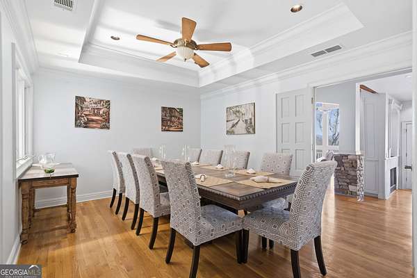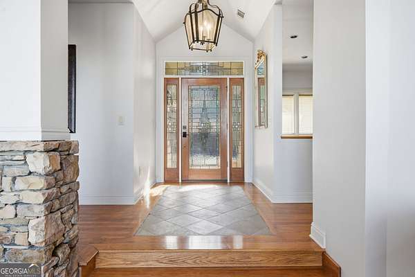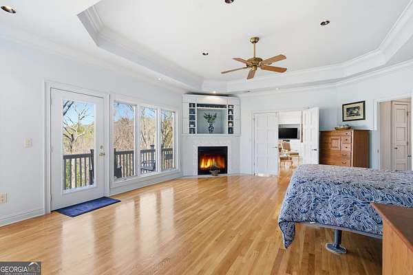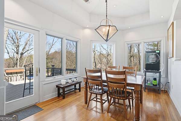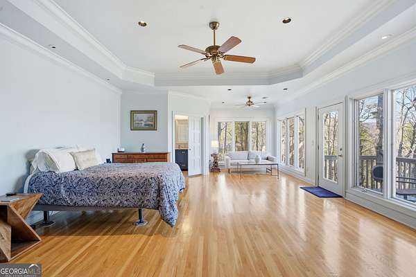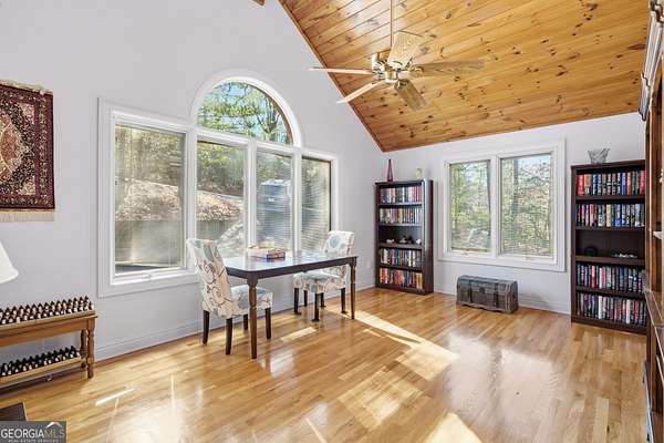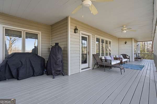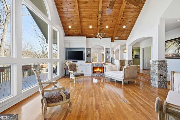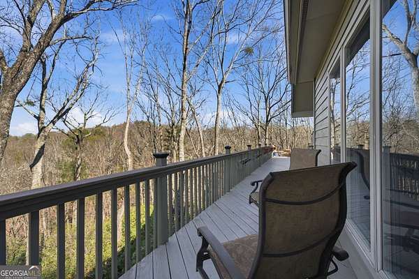 Enjoy refined mountain living with expansive, uninterrupted northern views from this beautifully positioned home just minutes from Big Canoe's North Gate. Set on a private 1.88-acre corner lot with a circular driveway, the property offers exceptional privacy, generous parking, and a true retreat setting. The main level is thoughtfully designed for everyday living and entertaining, with breathtaking views showcased throughout. The primary suite is located on the main level and features a fireplace and spa-style bath, complemented by an additional en suite bedroom on the same floor. The kitchen is well-appointed with high-end appliances including a paneled Sub-Zero refrigerator, gas cooking with interchangeable electric components, grill and griddle, wall ovens, and a warming drawer. Adjacent living and dining spaces are anchored by a double-sided fireplace and open to a large deck ideal for enjoying the mountain scenery. A spacious flex room, powder room, and laundry room complete the main level. Above the three-car garage is an oversized suite with private bath, kitchenette, and Juliet balcony, offering flexible use as a guest retreat, home office, or recreation space. The terrace level provides additional living options, including a bedroom with deck views, multiple bonus rooms suitable for media, play, or bunk space, an oversized bathroom, and a large workshop or storage area with exterior access. Recent improvements include HVAC systems, water heaters, roof, exterior paint, and refreshed decking. Two levels of outdoor living spaces include expansive decks, a screened porch, and under-decking for all-weather enjoyment. The garage features epoxy flooring, ample storage, and approximately 22-foot depth. Located within the gated community of Big Canoe, residents enjoy access to championship golf, tennis facilities, multiple pools, lakes, hiking trails, a modern fitness center, and clubhouse dining, all within a secure, nature-preserved mountain setting just an hour north of Atlanta. A rare opportunity to own a spacious, view-oriented mountain home offering privacy, versatility, and access to one of North Georgia's premier communities.