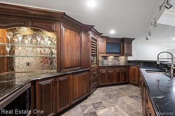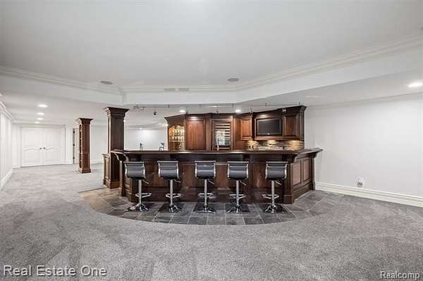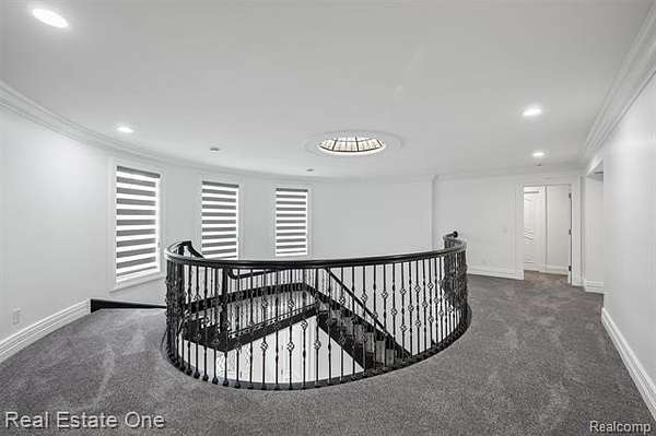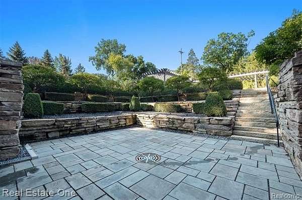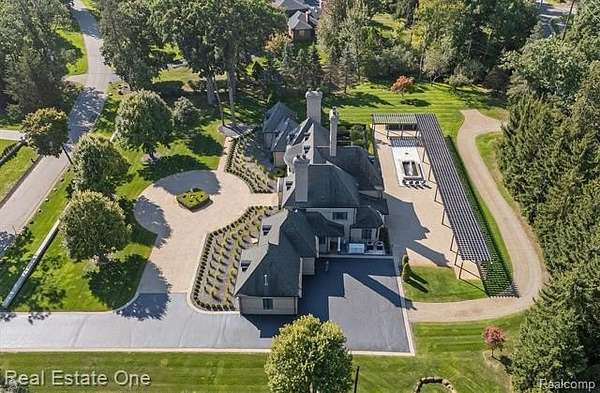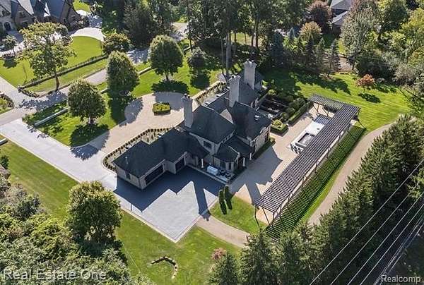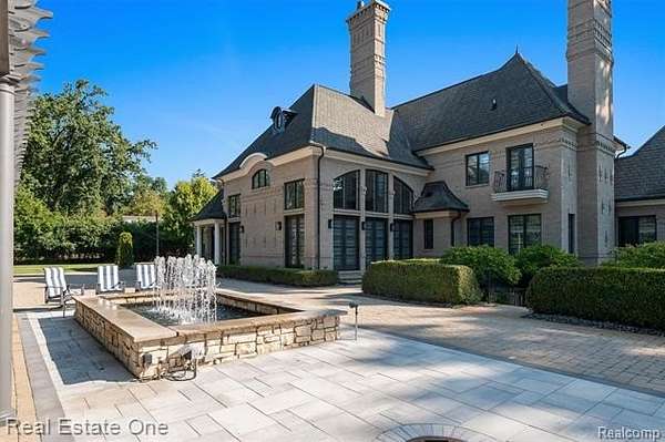 LOCATED WITHIN BLOOMFIELD HILLS’ COVETED CRANBROOK CORRIDOR, priced significantly below current appraisal, this architecturally striking estate is set on over two acres behind a sweeping circular drive, with extraordinary landscaping, private grounds, and gated rear access enhancing the setting. A dramatic two-story entry introduces beautifully remodeled interiors featuring updated flooring and refined design detail, including expansive windows, impressive ceiling height, thoughtfully designed entertaining spaces, and a reimagined dual functioning family room/office. The renovated kitchen offers premium appliances, expansive counters, a substantial island, and a sunlit breakfast area. The soaring great room showcases dramatic scale, abundant natural light, and a statement fireplace. Designed for exceptional entertaining, the walkout lower level features a custom bar, billiards area, sauna, steam shower, dedicated exercise room, and expansive recreation space opening to a remarkable terraced courtyard with outdoor fireplace and extensive stonework. Beyond, a striking pergola frames a dramatic fountain courtyard and exceptional outdoor living space. Recent features and improvements include extensive lighting updates, updated powder rooms, a renovated laundry room, interior and exterior painting, and window treatments, along with furnaces and air conditioning, a whole-house generator, an oversized 3-car heated garage with updated doors and lighting, alarm system with indoor and outdoor cameras, and extensive exterior enhancements. A rare combination of scale, design, and setting in one of Bloomfield Hills’ most distinguished estate locations. All measurements and data approximate.