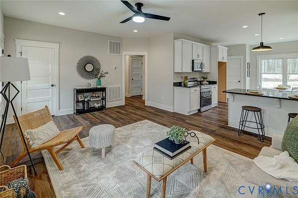 Welcome to this charming brand new home nestled on a spacious 1.59 acre lot; offering the perfect blend of comfort and country living. Relax and unwind on the large, inviting front porch - ideal for enjoying peaceful morning or evening sunsets. Inside, the home features durable and stylish luxury vinyl plank flooring throughout, creating a seamless and modern feel. The kitchen is equipped with beautiful granite countertops and soft-close cabinetry that extends throughout the home, adding both elegance and functionality. Ceiling fans in every bedroom and living room provide year-round comfort. With its thoughtful upgrades and generous outdoor space, this property offers both tranquility and modern convenience. The best part yet: as of April 21 siding color, roofing color and all interior selections can still be made. Completion is estimated to be August. *Pictures are of similar previously completed home and may not reflect exact finishes*