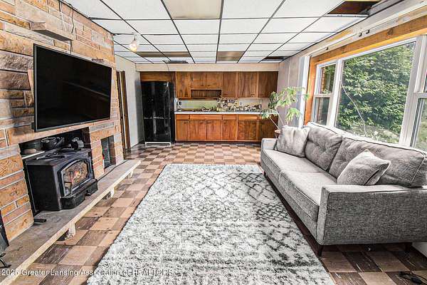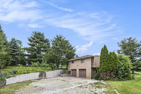 Wake up to hummingbirds out your window, eagles overhead, and the gentle bend of the Looking Glass River just beyond your backyard. This hilltop brick home offers peaceful, panoramic views and a daily dose of wonder from every angle. Whether you're floating the river, watching wildlife, or tending to native gardens, the setting is something special. Inside, you'll find 4 bedrooms, a spacious walkout lower level with a second kitchenette, and a statement-making sandstone fireplace with a wood stove insert that radiates warmth. Recent updates include a newer roof and boiler, plus a heated 2.5-car garage with utility sink for the practical perks. Need more room to tinker, build, or store? A large pole barn is ready for hobbies and projects of all kinds. The property's mix of open space, fruit trees, and shade along the riverbank offers plenty to explore, with a tucked-away island that's perfect for a picnic or quiet moment. All this ~ just minutes from Grand Ledge, Eagle, and Portland with quick access to I-96. Private, peaceful, and wildly beautiful... welcome home!