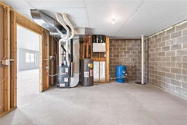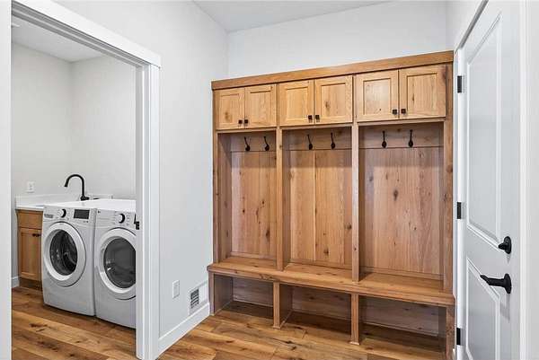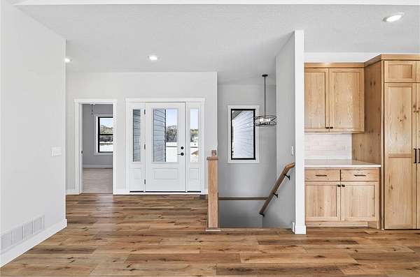 The home includes a hidden pantry, quartz countertops, and an oversized entryway from the garage complete with built-in lockers. Additionally, you'll appreciate the fully finished and heated garage, providing comfort and convenience.