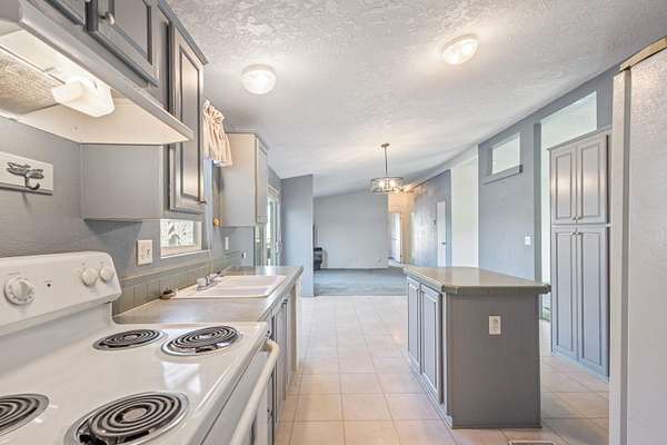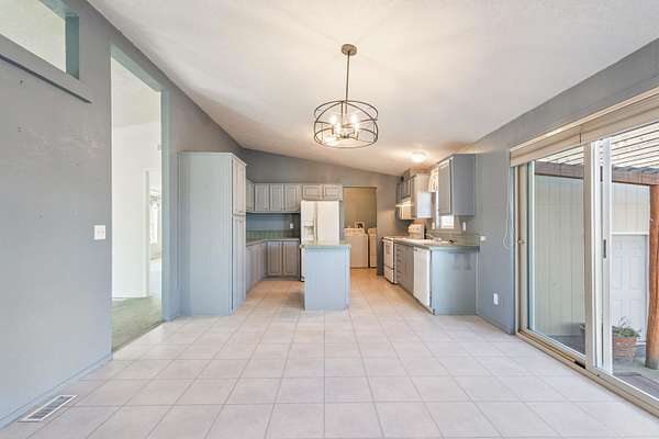 - Double Vanity, Fiberglass Stall Shower, Kitchen Island, Laminate Counters, Linen Closet, Pantry, Primary Downstairs, Shower/Tub Combo, Vaulted Ceiling(s)