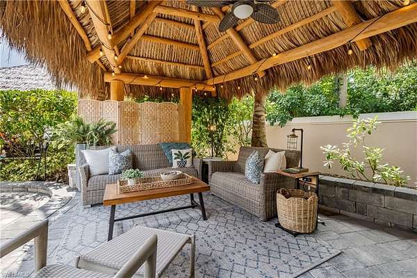 Lot 34 - Excellent location in Naples Motorcoach Resort. Over-sized site on the desirable back-wall is extra deep and, by being located at the far back of the resort, is extra quiet. Site plan allows for optimal privacy. Perfect orientation for sun direction. No utility or other obstacles. Casita with 110 square feet interior space plus outdoor covered veranda. With a half-bath, casita can accommodate a queen-size bed, office, sitting room, or other plans. Tiki hut is less than two years old and provides a quiet oasis. Come enjoy your peaceful slice of paradise! Naples Motorcoach Resort is a Class A only resort and boasts a beautiful infinity pool, spa, exercise room, men and ladies' saunas, pickleball courts and a catering kitchen that owners can use. A clubhouse for events that are sponsored by the resort or you can reserve for your own gathering. Two satellite pools each with a spa their own rest rooms and a laundry room. We can't forget your furry best friend; the resort also has a dog park! Perhaps the most unique feature is that this is the only Class A Resort in Naples with it's own (inside the gates) gulf access via the community boat ramp. Don't have your own boat? No worries.. take one of the community kayaks and explore the area, head to the gulf, stop at one of the islands and admire the wildlife. The options are endless in this paradise..... Call today and make your dreams a reality!