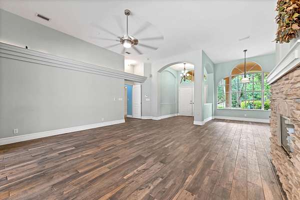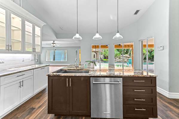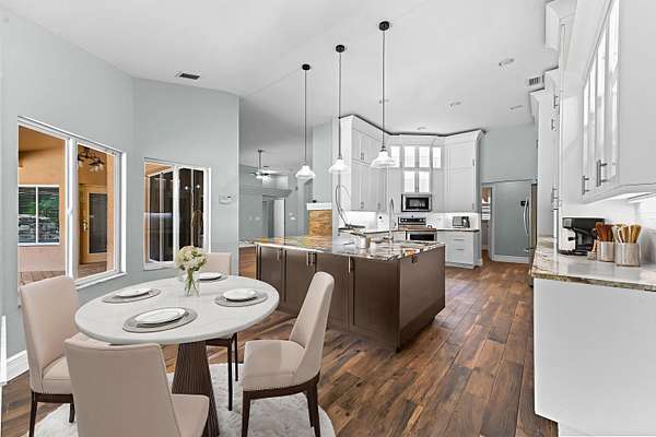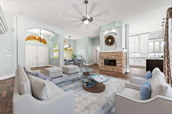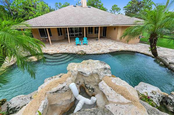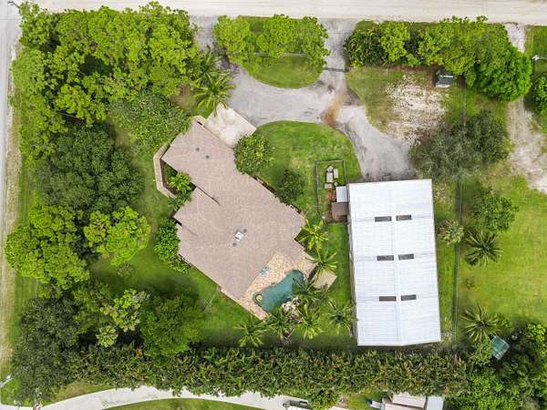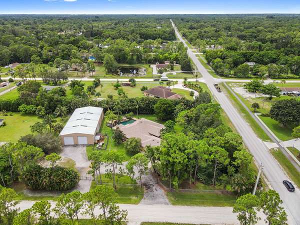 Welcome to this incredible single-family pool home with an oversized attached garage & a huge detached 5,000 sq ft garage/workshop, a true masterpiece of space and serenity, perfectly situated on a prime corner lot spanning 1.75 acres in The Acreage. With a new roof (2023) and no HOA to contend with, you'll enjoy peace of mind along with unparalleled freedom and privacy. This residence features 4 bedrooms and 3 full bathrooms, meticulously designed to offer both comfort and elegance. The spacious and open living area serves as the heart of the home, complete with a cozy fireplace and a sliding door that provides seamless access to the patio.