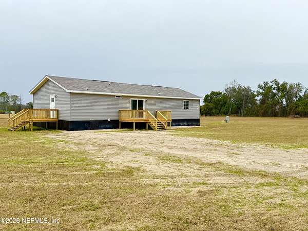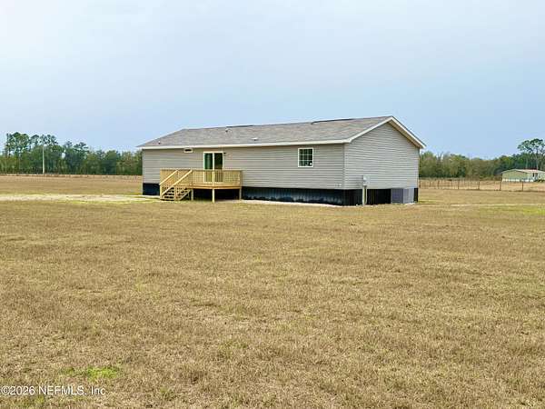 Welcome to peaceful country living with all the comforts of a brand-new, top-of-the-line 2025 custom-built mobile home. This three bedroom, two bath home sits on 5 acres of gorgeous, cleared pasture land with a lovely line of trees along the back, perfect for privacy and catching stunning sunsets. Inside, you'll love the bright open layout featuring a spacious kitchen with a large island with large farm sink, and a walk-in pantry for all your storage needs. Step out and enjoy your choice of a front porch, back porch, or side porch, each offering its own peaceful view. Conveniently located between Gainesville and Starke, this home gives you the best of both worlds: country charm with easy access to town! Call today to schedule your tour
