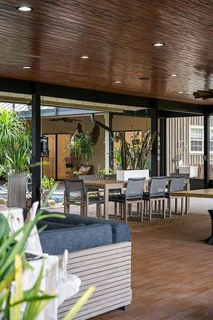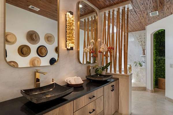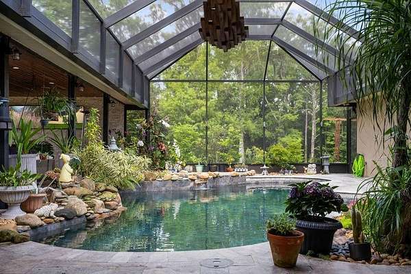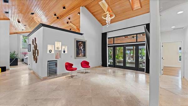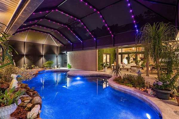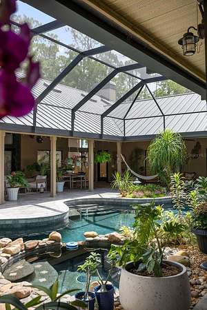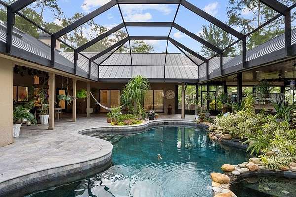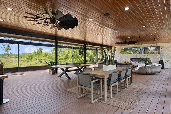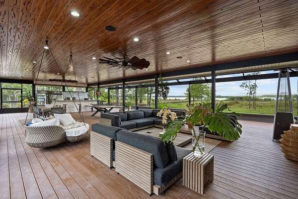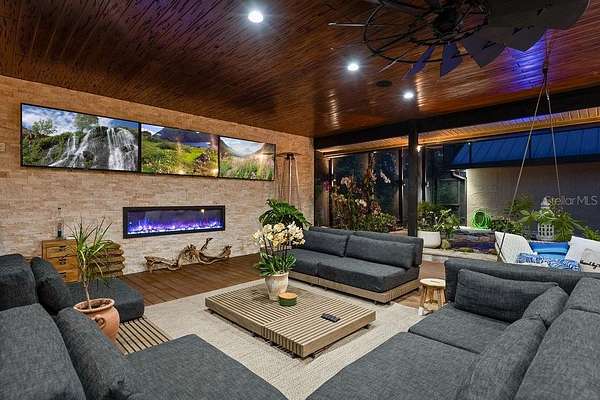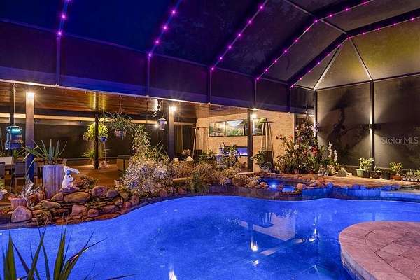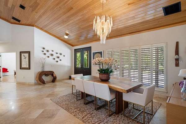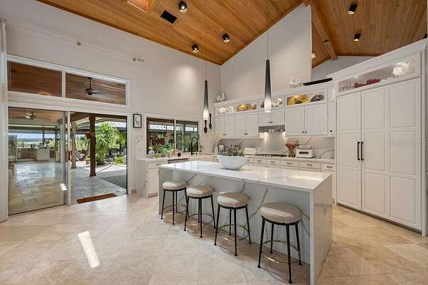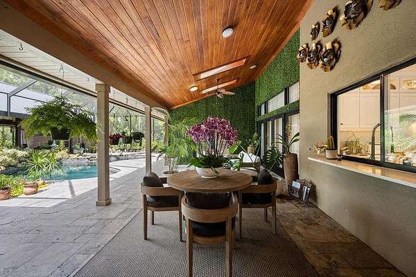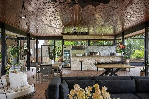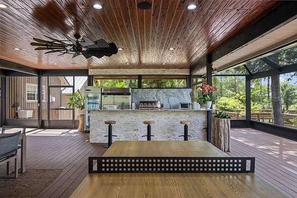 Step outside and discover what truly sets this home apart—over 4,000 square feet of screened outdoor living space built for year-round enjoyment. Relax in the resort-style pool and spa, or entertain in the custom outdoor kitchen featuring commercial-grade stainless steel appliances beneath a stunning cypress wood ceiling.