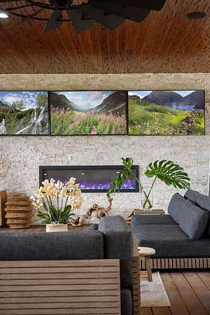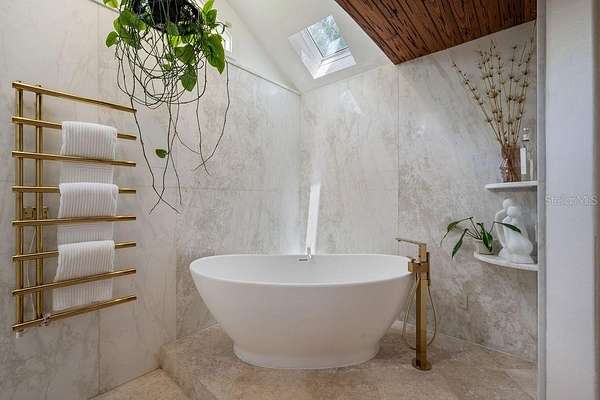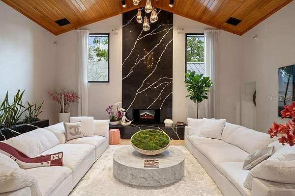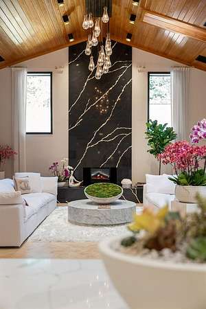 From the moment you arrive, this property feels like a private retreat. Inside, you’ll find over 3,500 square feet of beautifully updated living space with 4 spacious bedrooms and 3 spa-inspired bathrooms featuring marble finishes, soaking tubs, and heated towel racks. The main living area stuns with soaring vaulted ceilings, custom chandeliers, and a sleek quartz fireplace—creating a space that is both elegant and inviting.
