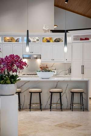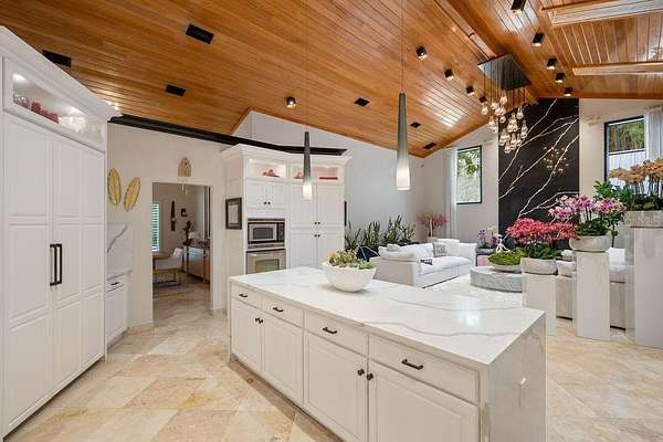 The fully renovated kitchen (2021) is designed for both daily living and effortless entertaining, offering modern, high-end finishes and a seamless connection to the home’s expansive indoor-outdoor lifestyle.