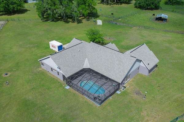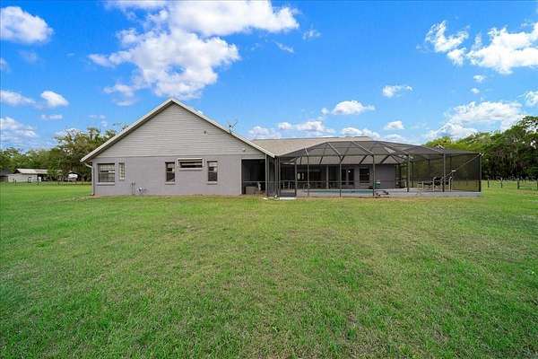 Outdoor living is equally impressive, featuring a screened 11’ x 24’ in ground pool with updated equipment including a Hayward VS TriStar 900 pump and Jandy sand filter, along with a fully rescreened enclosure. The property also includes multiple fenced and gated pasture areas, a powered utility building, and extensive exterior improvements such as stadium lighting, gutters, and an upgraded gate system.