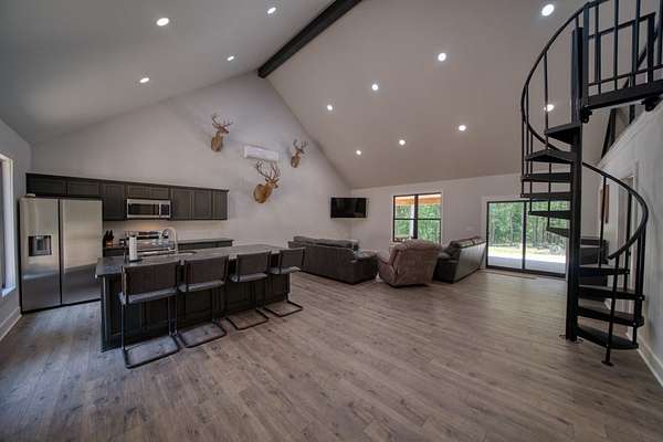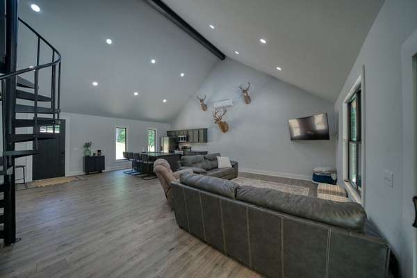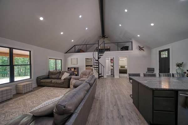 This property is your ticket to privacy! Located just off of the highway on it's own gated driveway, this home was recently constructed and feels brand new! The surrounding 14 acres encompasses a rare, flat ridge top so you have room for future expansion or fun exploring in the woods! Two bedrooms downstairs and a loft bedroom let you sleep the whole family. Impressive ceiling height, granite counter tops, and stainless appliances make this a fun house to gather in. The covered back patio gives you a cozy place to escape the rain or an entertaining place to watch the game. This property has underground power, a private well, and spacious parking. Located very close to Beaver Lake and the White River but yet still has quick access to Eureka Springs!