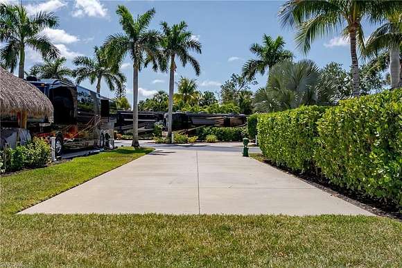 Lot 170 - You drive past the beautiful entry fountains to the gates of Naples Motorcoach Resort. As the gates open you marvel at the beautiful landscaping and fountain in front of the club house. As you turn down your Royal Palm lined street, you see your personal oasis. You pull in and you once again are in awe of the beautiful lakefront view almost perfectly centered on the majestic fountain. Past the fountain you see the beach that then leads to the pool and beautiful clubhouse. Your view is just spectacular. This year you decide to look at all of the beautiful properties that are paved and landscaped to draw from those ideas to design your own piece of paradise. You have a blank slate, do you want a tiki? a casita? a hardscape? all of the above? You are your own creator of your own version of paradise. But what did you do today? Well you took the community kayaks and launched them from the community boat ramp and went as far as the gulf and back. After all of that you decided a nice dip in the infinity pool and sauna is in order. Naples Motorcoach Resort is a Class A only resort and boasts a beautiful infinity pool, hot spa, exercise room, men's and ladies saunas as well as a kitchen that owners can use. There are also two satellite pools with a hot spa, their own rest rooms and a laundry room. We can't forget your furry best friend, the resort even has a dog park! Special note to investors, looking for a place to invest or reinvest as a 1031 exchange? Look no further, own this piece of paradise and put it into the management run rental program. The rental program administration advertises, schedules renters, collects payment including applicable taxes/fees and sends you your portion. These deeded lots are also mortgage eligible and available for a quick close.