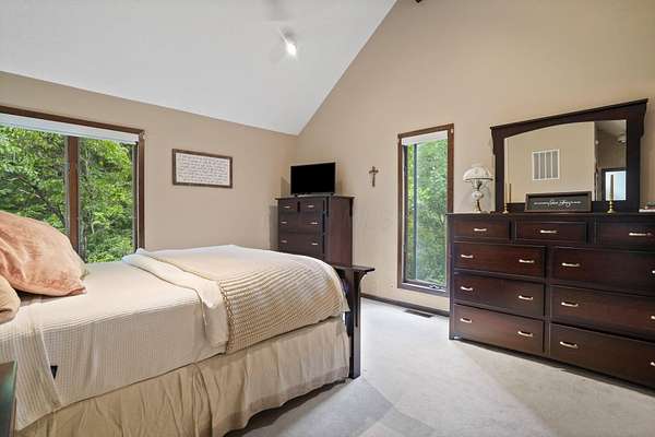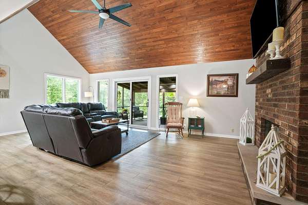 10 ACRES + LAKE VIEWS! Every inch of this pristine property has been meticulously maintained and the interior has a perfect flow with combination of indoor/outdoor living, perfect for entertaining family and friends alike. Beginning with curb appeal, the beautiful exterior and landscaping create a whimsical and peaceful feeling, welcoming you home into your own personal oasis. Multiple outdoor spaces to enjoy the beautiful lake views, whether the back deck, or the screened-in porch, the garden, your own personal orchard, or enjoying the fully concrete driveway, garage, and more! Inside, the vaulted entryway and loft make the space feel welcoming, with large windows and tons of natural light. The formal dining space opens to the stunning and completely renovated kitchen, complete with new cabinetry, quartz countertops, coffee bar area, and top-of-the-line appliances. The living space is complete with the focal 2-story fireplace, and screened porch to enjoy the sunsets over the lake. There is a second living space, complete with wet bar, half bath, and oversized windows highlighting the lake view. The main floor has 2 bedrooms with generous closet space and updated full bathroom. Upstairs, there is an open vaulted space, perfect for an office, playroom, or could be finished into another bedroom. The primary suite is upstairs and complete vaulted ceilings, plenty of storage/closet space, and en-suite soaking tub, shower, and double vanity. This home has neutral paint throughout and BRAND NEW windows and doors, whole house generator. Too many updates and amenities to list - you must see in person to appreciate the true beauty of this property. Perfect location, seconds from US-33, Lake Logan, shops, restaurants, schools, and parks. Welcome to your home sweet home! Please see ATA Remarks - this property has deed restrictions limiting owner-occupants.