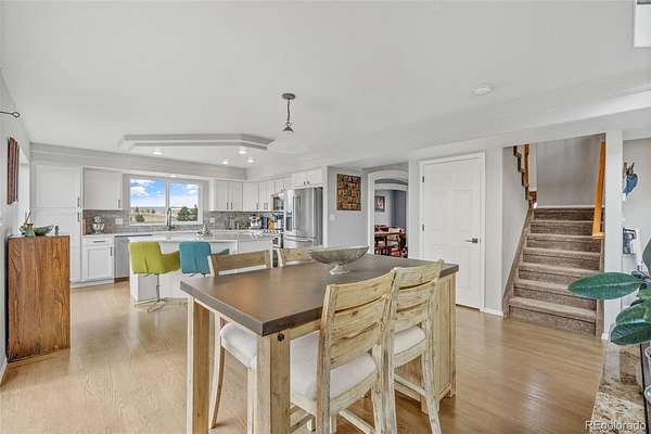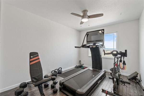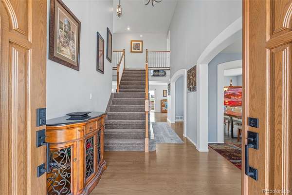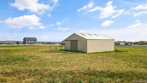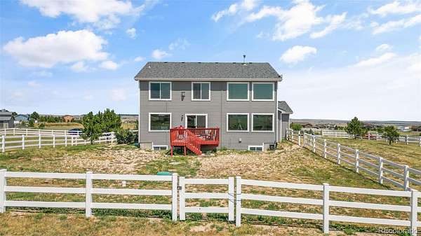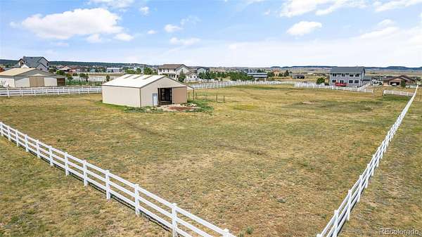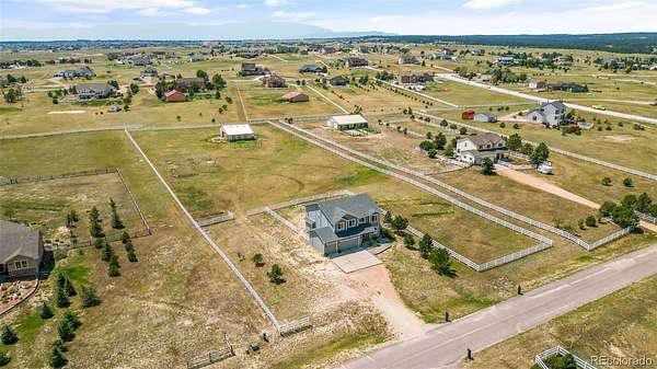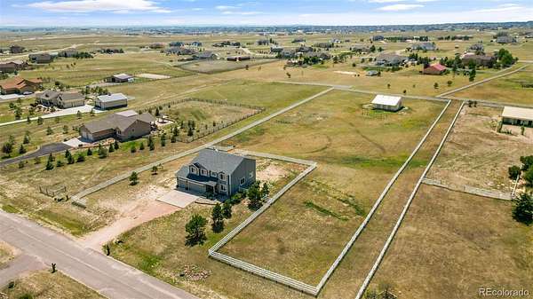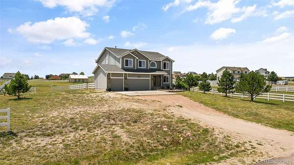 Set on nearly 3 acres in the coveted Latigo Trails community, this 4-bedroom, 4-bathroom home offers 3,606 sq. ft., a 3-car garage, RV parking, and stunning mountain views. The property includes a 35’ x 36’ barn with stalls, a tack room, oversized doors, electricity, and full fencing—perfect for horses. Inside, you’ll find a spacious primary suite with flex space, an island kitchen with casual and formal dining, two gas fireplaces, new carpet, resurfaced hardwoods, and a finished basement with additional living space. Recent upgrades include a Class 4 roof, furnace, water heater, refrigerator, radon system, and exterior enhancements. Enjoy neighborhood perks like indoor/outdoor arenas, as well as boarding options, within a 45-acre equestrian facility. Just 30 minutes to both Schriever and Peterson Space Force Bases, this home blends rural tranquility with modern convenience.