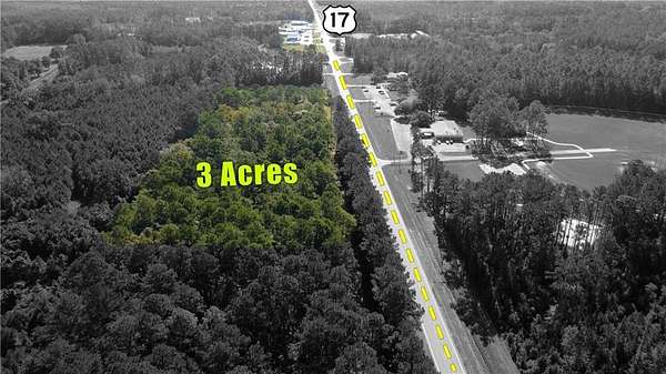 Prime 3-acre commercial parcel just 1/2 mile from I-95 and Hwy 17, offering outstanding visibility and accessibility. Positioned directly across from a bustling recreation complex--home to local baseball and youth football--this site benefits from steady community traffic. With gas stations and dining options nearby, it's an ideal location for a business seeking prominence and convenience. High and dry, this property is well-suited for a wide range of commercial or civic development projects. With major roadways nearby and constant local activity, this could be the address that elevates your vision from plans to lasting success.