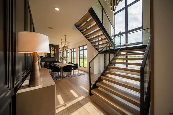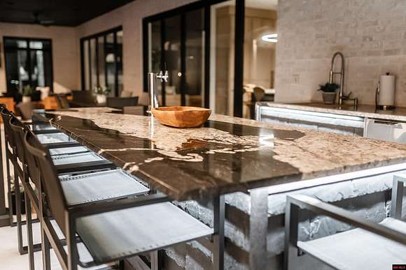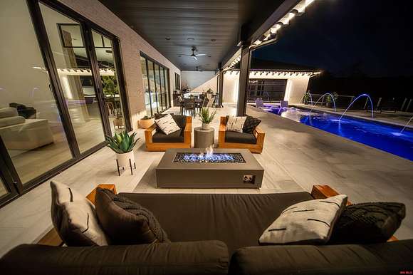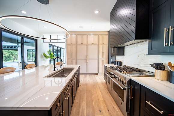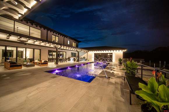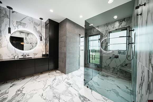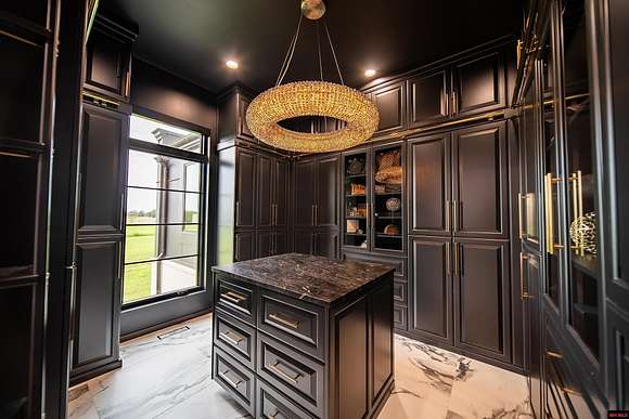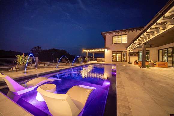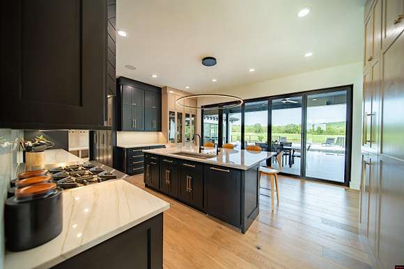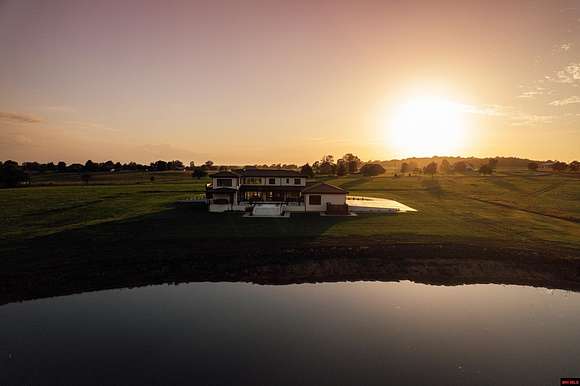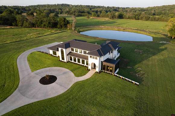 This luxury custom home with 5 bedrooms, 5.5 bathrooms can accommodate a large family or host guests comfortably. Offering impressive architectural elements, high end Quartzite countertops, top of the line appliances, thoughtful storage solutions, custom cabinetry which create a functional yet seamlessly sophisticated look. Other amenities include two washers/dryers in the laundry room, convenient mud room, and central vac. The home is designed with accordion glass doors for seamless connectivity of the indoor and outdoor living spaces for effortless entertaining. The covered patio overlooks a heated pool, a spa, a view of a small lake, and 39+ acres m/l. Bathrooms feature custom tiled showers, stone countertops, quality fixtures & finishes throughout. Large bedrooms boast ample storage with walk-in closets. This one of a kind, luxury home was designed to provide an unparalleled living experience, with upscale amenities, in a picturesque setting, yet close to town.