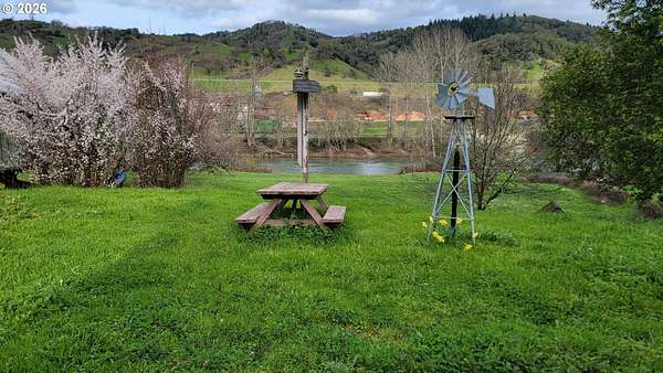 Must see waterfront property! 2bd/2ba farmhouse recently received many updates! Brand new LVP flooring through-out, main bathroom is fully remodeled with a roll-in shower & the second bathroom has a jetted tub for ultimate relaxation! Property also includes a 480sqft cabin with a kitchen, bedroom, shower & loft. Brand new pellet stove & built in A/C unit. The oversized 3 bay shop includes a car lift, running water and instant hot water heater! Additional highlights include 2 RV parking spots with 220 power & water hook-ups, a 2 stall 10x20 barn, 100+ yard shooting range & several producing fruit trees. Well is high flowing that includes a 3000-gallon storage tank & a whole home filtration system. Old water rights with pump & 4 line in-ground irrigation system. The hill down to the river has been made into a waterslide with 2 irrigation sites at the top for full water fun. Property has also been approved for a SDU to build onto the property if desired. Enjoy privacy right on the South Umpqua River with amazing bass & salmon fishing. Close to 1-5 for all of your needs! This is a true hidden gem! Buyer to do due diligence.