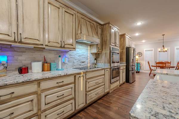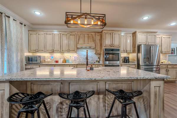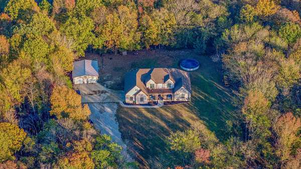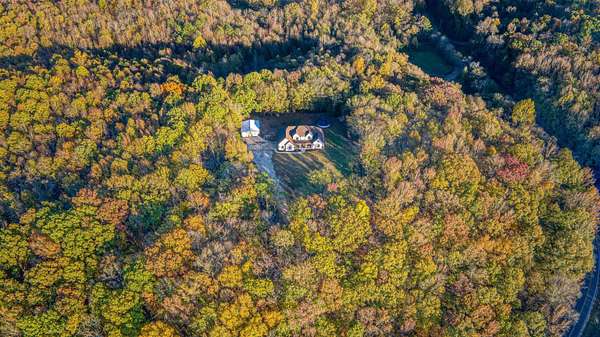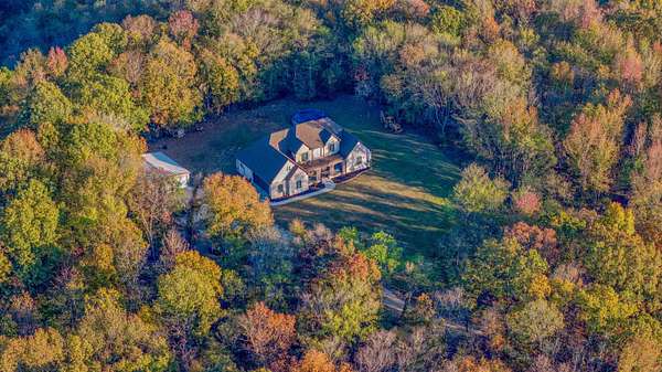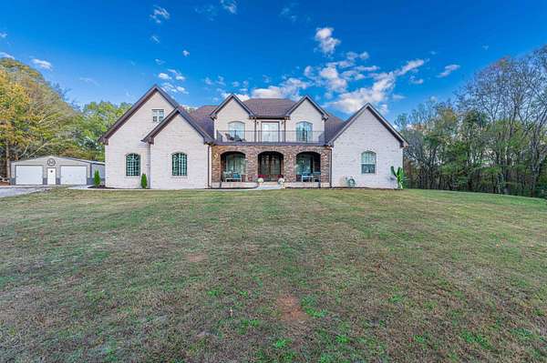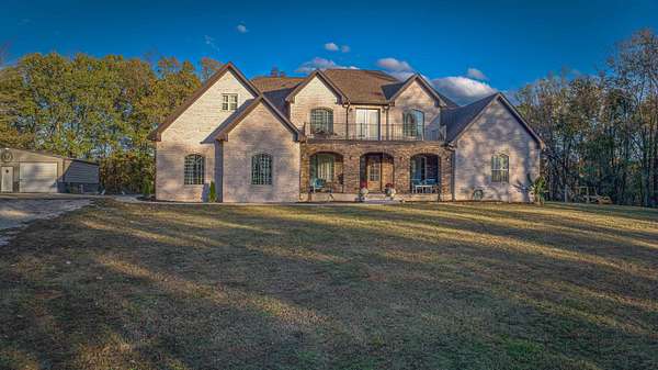 Escape to this 9 AC+/- secluded paradise but still be within 30 minutes of downtown Florence, shopping and medical. The main level features 3 bedrooms, 1 full bath, & 1 half bath. Also on the main level are a mudroom and laundry room large to double as an office or craft room. A chef's kitchen awaits with custom cabinets, granite countertops, island, walk in pantry. Open floor plan, great room with fireplace and custom mantle. The 2nd floor features a bonus room (possible 5th bedroom). An expansive primary suite also situated on the 2nd floor. When you experience the views you will understand why! Primary bath features a double vanity w/custom cabinets, marble walk-in shower and soaker tub. Walk right out of your primary suite onto a magnificent balcony overlooking breathtaking views of everything nature and the Tennessee River. There is a 2-car attached garage with storm shelter/safe room. A 30x40 detached metal garage for your RV, boat or hobbies! Call today for your private showing!