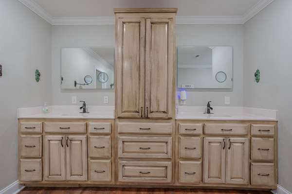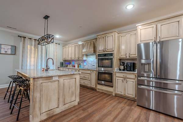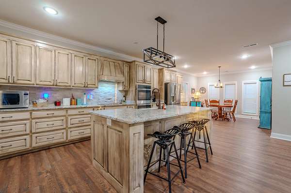 - Counters-Granite, Double Vanity, Kitchen Island, Open Floorplan, Pantry (interiorfeatures), Tub-Spa