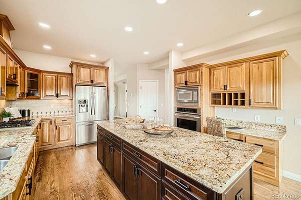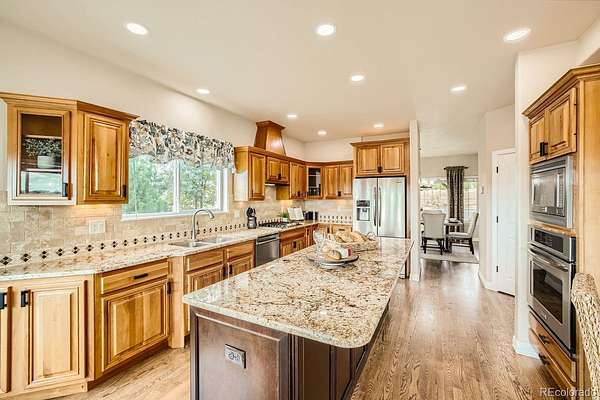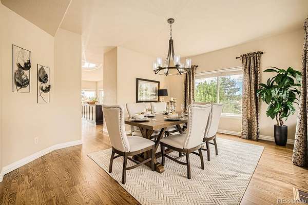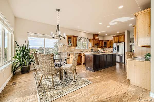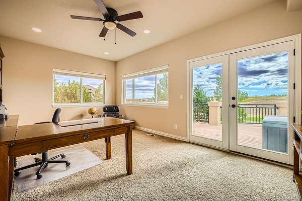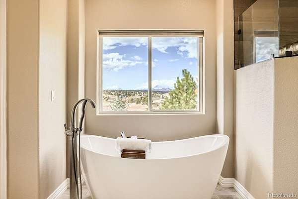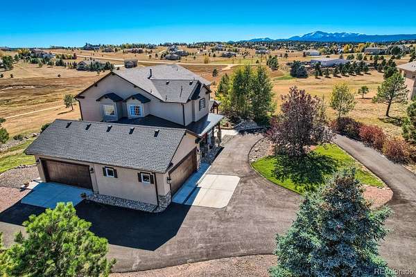 Enjoy this exceptional Colorado living experience on 2.5 acres with beautiful mountain views. Situated on the 18th tee box of Kings Deer Golf course lot in cul-de sac! Located in the highly sought after Kings Deer neighborhood and in the Lewis Palmer School District 38! Stunning views from every window. When you enter through the front door you will notice the impressive stair case & beautiful wood floors and lofty ceilings. This home has 6 bedrooms, 4 bathrooms and a 7-car garage! This gourmet kitchen is a chef’s dream. Beautiful granite countertops & custom cherry wood cabinets, equipped with stainless steel appliances, a reverse Osmosis water system and plenty of space to spread out. Also, you will find a spacious eating area with amazing views and a walk-in pantry, formal dining room and private bath on main. Upstairs you will find the large primary suite with French doors, luxurious 5-piece bath, soaking tub, and a generous walk-in-closets and remote controlled blinds. In addition you will find 4 private bedrooms each with a bath & walk-in-closet. The fully finished basement is made for entertaining, featuring a home theater, antique bar, & a dedicated wine room. There’s also an additional suite with ample space for visitors. Outdoor living is just as inviting, with a large composite deck supported by elegant stucco columns & a lower-level patio pre-wired for a hot tub. Both spaces are ideal for entertaining, all while enjoying unparalleled views of Pikes Peak & golf course. Recently enhanced newly completed garage addition, offering space for 7 vehicles. The garage wall organization system comes with cabinets and wall mounted system for extra storage areas, custom epoxy floor, pre-wiring for electric vehicle & generator. So many updates have been made that make this home better than new! Easy access to I-25, COS & Denver. Don't miss this opportunity to own this one-of-a-kind property!