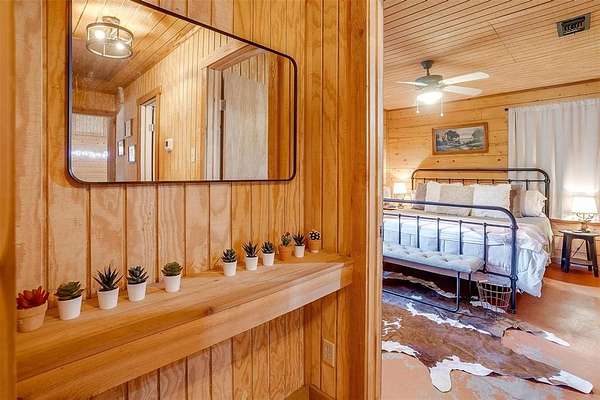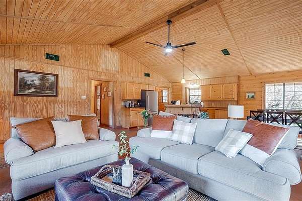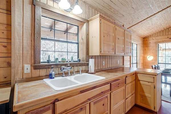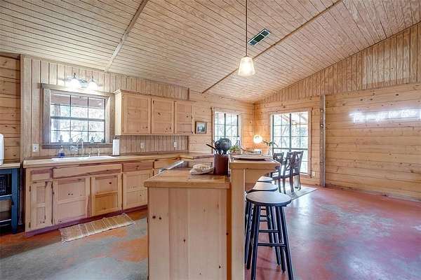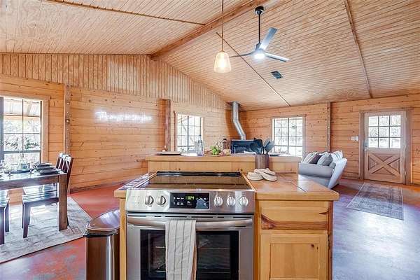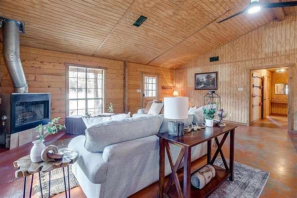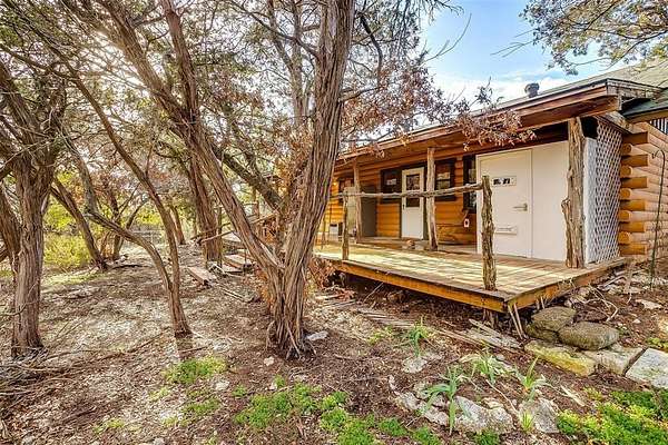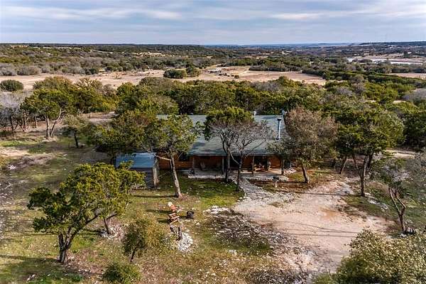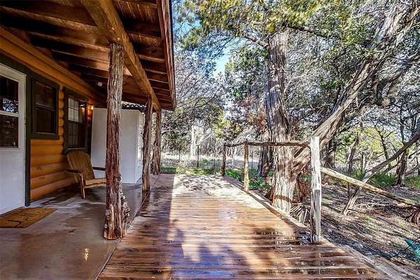 Escape to your own private retreat in this secluded log cabin perched atop Chalk Mountain! Set on over 11 acres of partially fenced land, this property offers unmatched privacy, tranquility, and breathtaking views of the surrounding countryside. Inside, the open concept layout showcases vaulted ceilings, a welcoming kitchen, and a cozy living area perfect for gathering. Durable concrete floors throughout provide easy care and low maintenance. The primary suite features a private bath with a deep soaking tub, ideal for unwinding after a day outdoors. An additional bedroom and full bath ensure comfort for family or guests. Step outside to the expansive covered porch and enjoy watching deer, birds, and other wildlife in their natural setting. The property also includes two storage buildings, a tornado shelter, and a dependable well with a Strata care filter system. Located just minutes from Fossil Rim Wildlife Center, Dinosaur Valley State Park, and Rough Creek Lodge, this home offers the perfect balance of seclusion and convenience. Whether you're looking for full time country living or a weekend escape, you'll also appreciate being within easy reach of Stephenville for shopping and amenities. Come experience the beauty, peace, and charm of country living on Chalk Mountain!