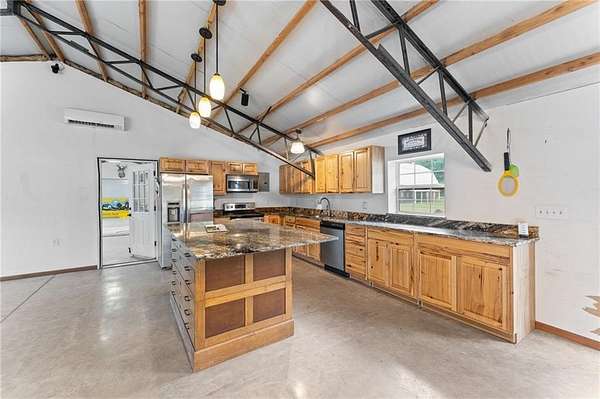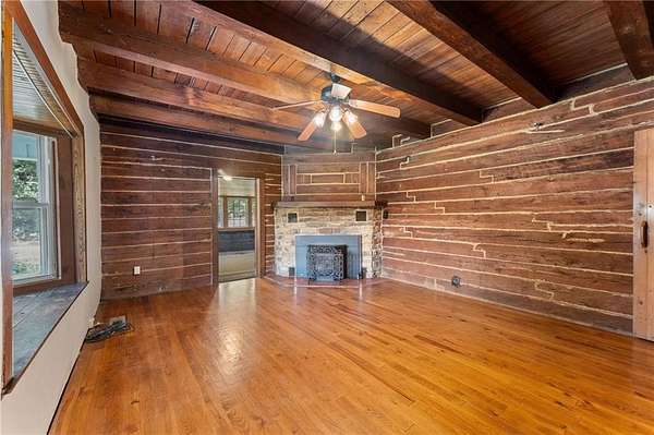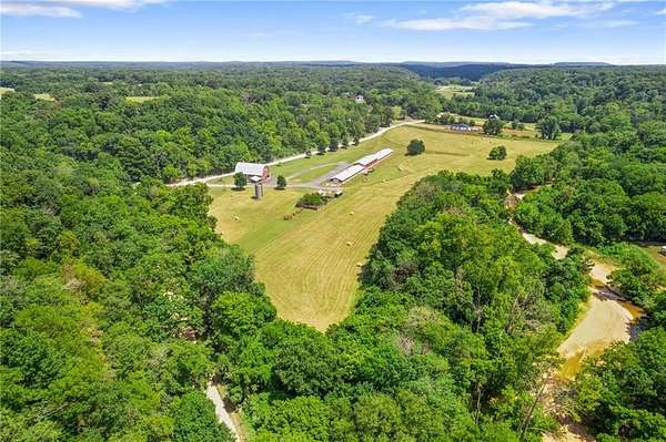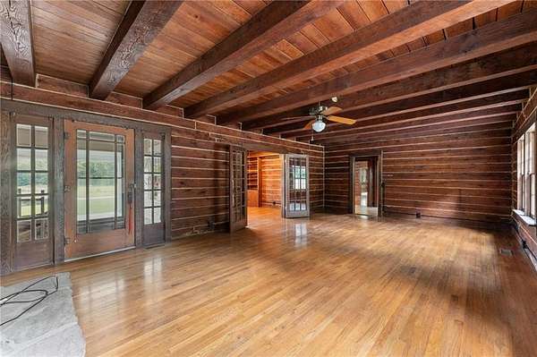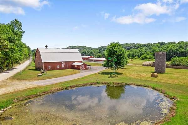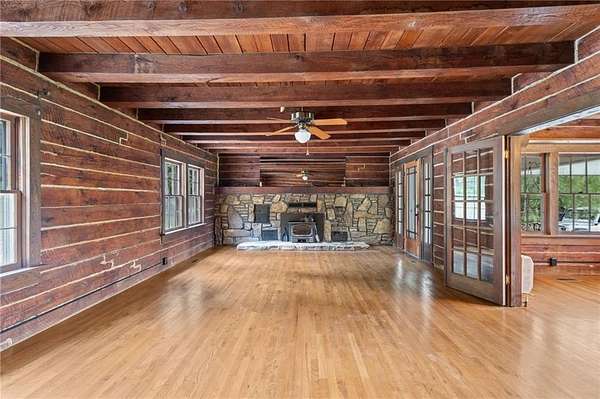 Step into a world of opportunity with this historical log home w NEW UPDATES and its accompanying structures, nestled on the banks of Little Sugar Creek. The property features a stunning 3,000SF two-story red barn, perfect for working spaces on the ground floor, while the upstairs loft stands as a favorite highlight of the entire farm. The expansive 12,000SF shop building is a true gem, w/ 5,500sf of heated and cooled space, ensuring comfort year-round. This remarkable facility includes a 1,280sf living area complete w a kitchen and bath, making it ideal for guests or long-term stays. The shop also features a 640sf loft and an office w/bath, insulated walls, and ceilings, 3 rollup doors and five walk-in doors. The reinforced floor at one end is ideal for vehicle maintenance repair. This unique property offers endless possibilities. It could serve as a fabulous event or retreat center or comfortably accommodate multiple branches of the same family. located along the trail of tears and civil war trail.