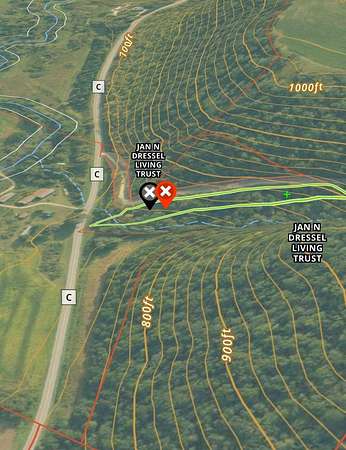 from Ferryville turn onto CTY hwy C, follow until you see Gurnsey Rd sign/ Dead end road sign on left side of CTY hwy C
