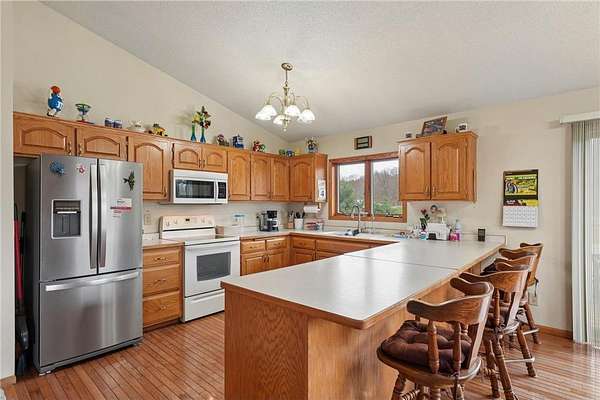 Set on 5.3 beautifully manicured acres, this country property feels like your own private park—complete with peaceful pond views. The home offers 3 bedrooms with the potential for a 4th, giving you flexibility for guests, office space, or future expansion. Inside, you’ll find a spacious kitchen featuring hardwood floors and a large breakfast bar—perfect for gathering and everyday living. The attached garage adds convenience, while the impressive detached pole shed with concrete floor and electric provides excellent storage for toys, tools, or hobbies. A rare blend of space, function, and scenic surroundings!