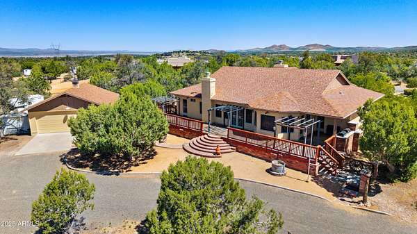 Unique Opportunity! Explore this spacious horse property with 3 car garage attached, PLUS a 2-car garage and shop, PLUS 2 barns with turnouts, round pen, tack room, storage, 2 small greenhouses, several storage sheds. All included on 4 acres with Granite Mountain Views! The well-built home has 3 bedrooms, an office/bonus room and formal dining room. Great room with wall of windows looking on to back of property. Vaulted ceiling, fireplace with brick facing. Chef friendly kitchen has knotty alder cabinetry, Sub Zero appliances, walk in pantry. The back deck runs the length of the home and includes 3 pergolas, built in BBQ. Perfect for entertaining or just enjoying the quiet view. Plenty of room for RV parking. Ride from home to several trails. Motivated sellers will consider offers.