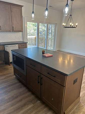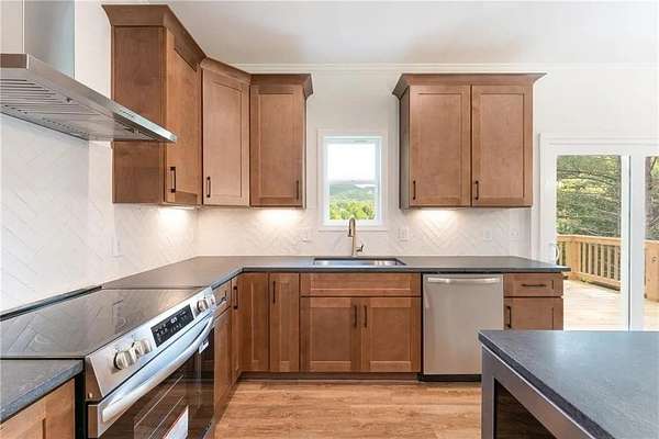 Be the very first to live in this stunning brand-new 3 bedroom, 2 bath home in beautiful Blairsville, GA. Offering 1,605 square feet on the main level plus a full 1,605 square foot unfinished stubbed basement (3,210 total square feet), this home provides generous space, quality finishes, and a light, airy feel throughout. The open floor plan features vaulted ceilings in the great room, a cozy wood-burning fireplace, and durable LVP flooring throughout the home. A huge glass door opens to the back deck, allowing you to enjoy the scenic views from inside or out. The kitchen is thoughtfully designed with stone countertops, a full appliance package, a large island, and an abundance of cabinets and drawers, making it perfect for both everyday living and entertaining. The spacious master suite offers a tray ceiling, walk-in closet, and a beautiful master bath complete with a huge walk-in shower and double vanity. Two additional bedrooms and a full bath provide comfortable space for family or guests. The home also includes a laundry room with washer and dryer, concrete driveway, an easy-maintenance yard, and convenient access off a paved road. With modern finishes, mountain charm, and room to expand in the full unfinished basement, 135 Autumn Ridge is ready to welcome you home.